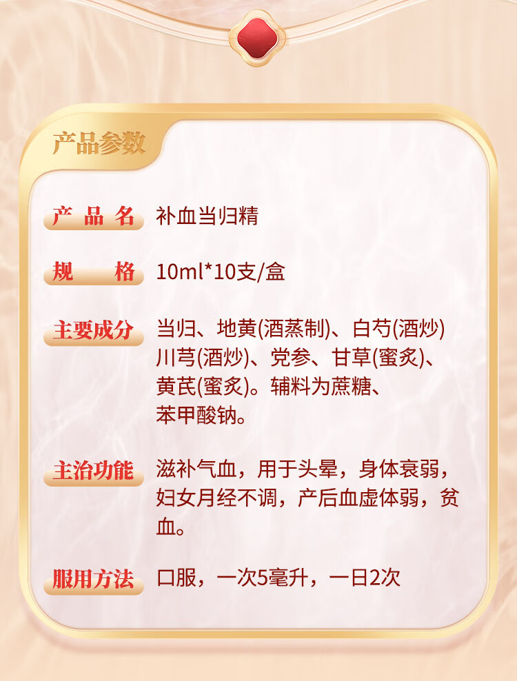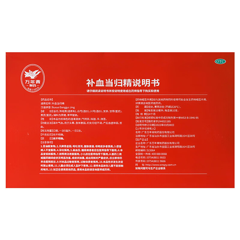 万年青 补血当归精 10ml*10支/盒 滋补气血 头晕 身体衰弱 妇女月经不调 血虚体弱 贫血