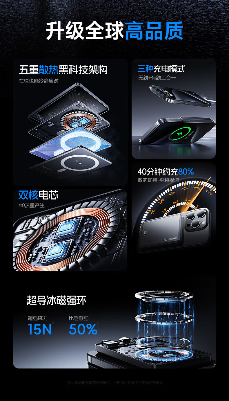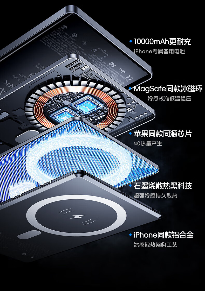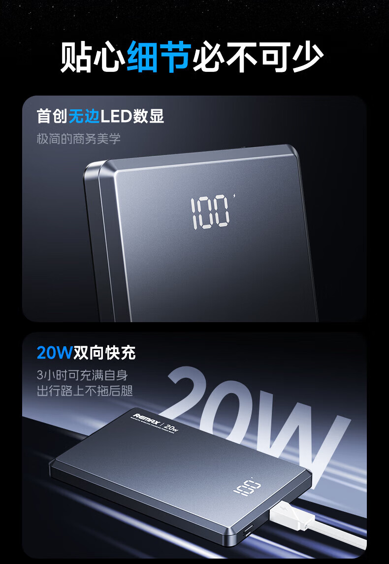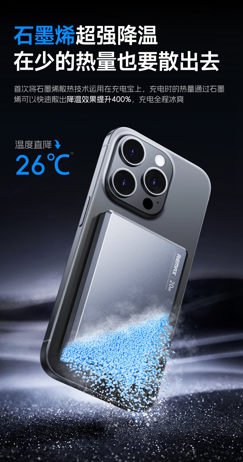 remax睿量3C认证【Magsafe外接电源】苹果磁吸充电宝10000mAh无线超薄20W快充适用iPhone16/17可上飞机