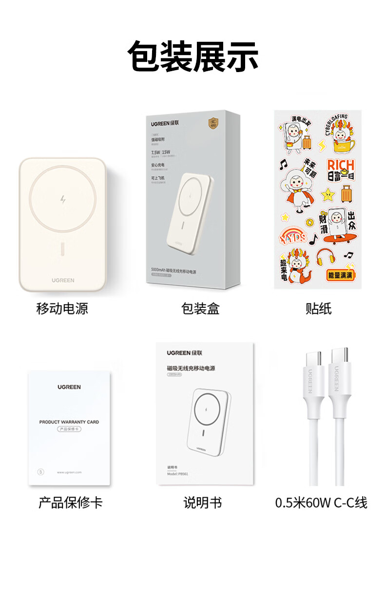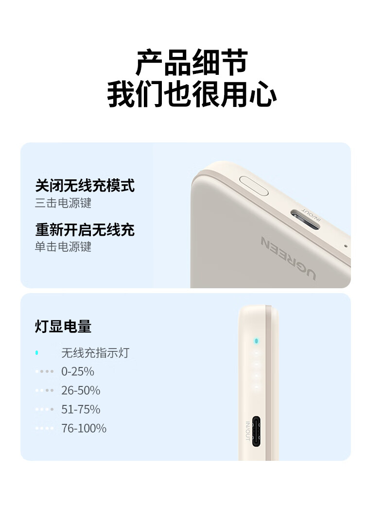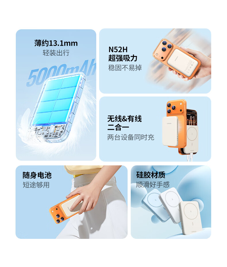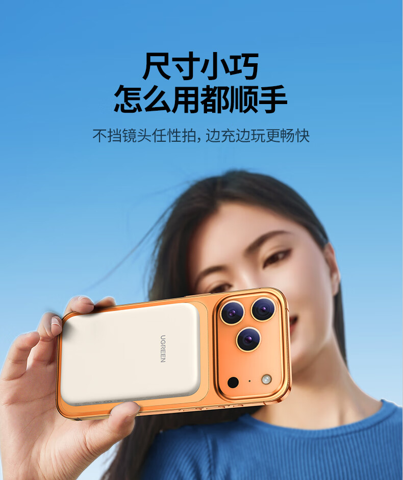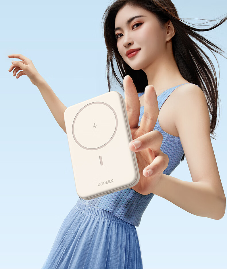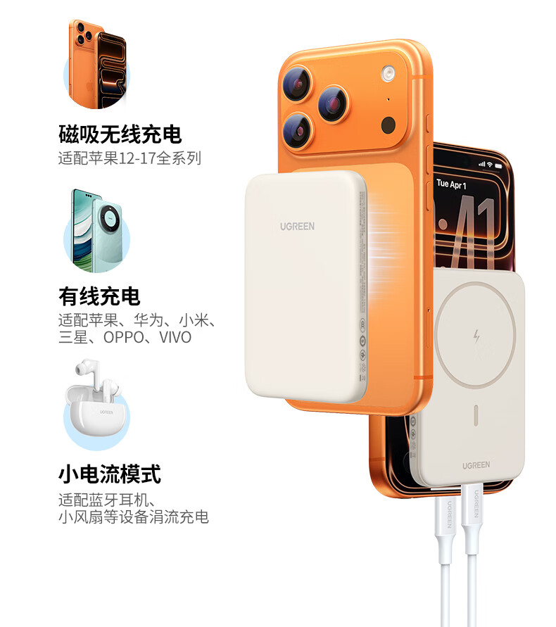 绿联【3C认证可上飞机】iPhone17磁吸充电宝5000mAh15W快充兼容MagSafe移动电源适用苹果17/16华为小米