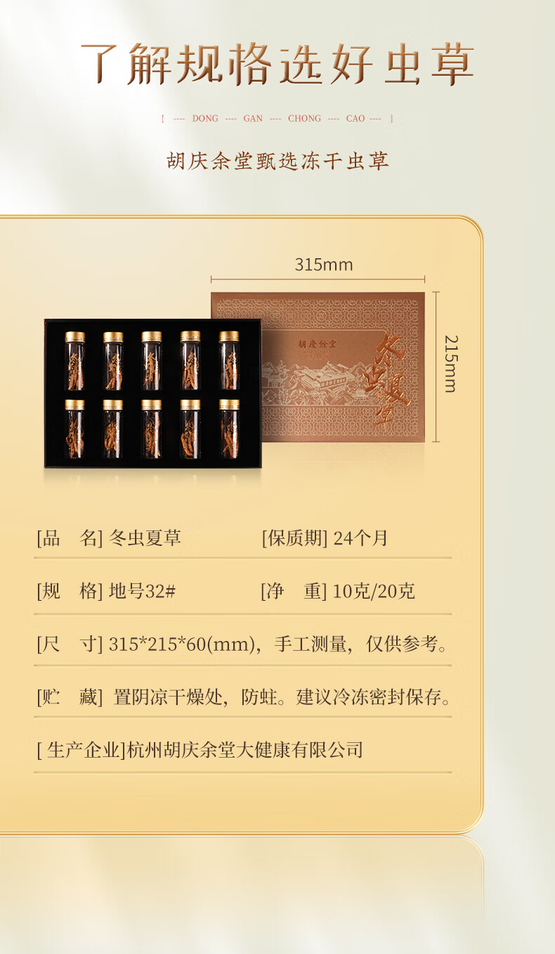 胡庆余堂冬虫夏草古铜礼盒地号32#高品质冻干虫草 送父母长辈营养品礼物 10克礼盒32#【升级款】