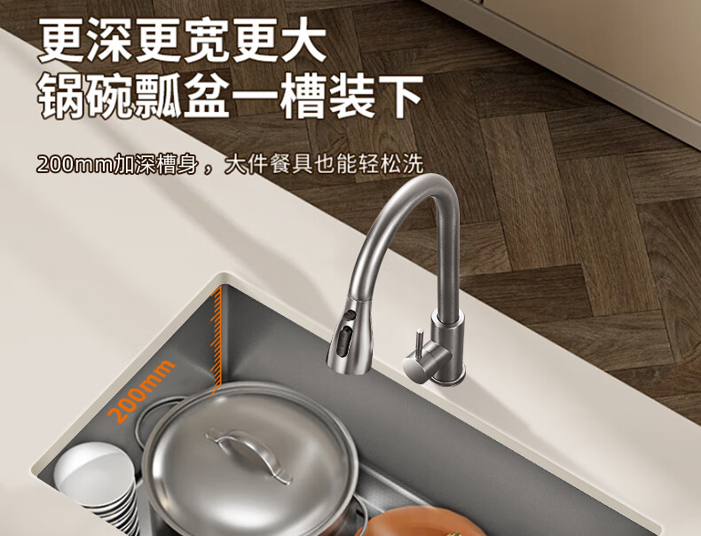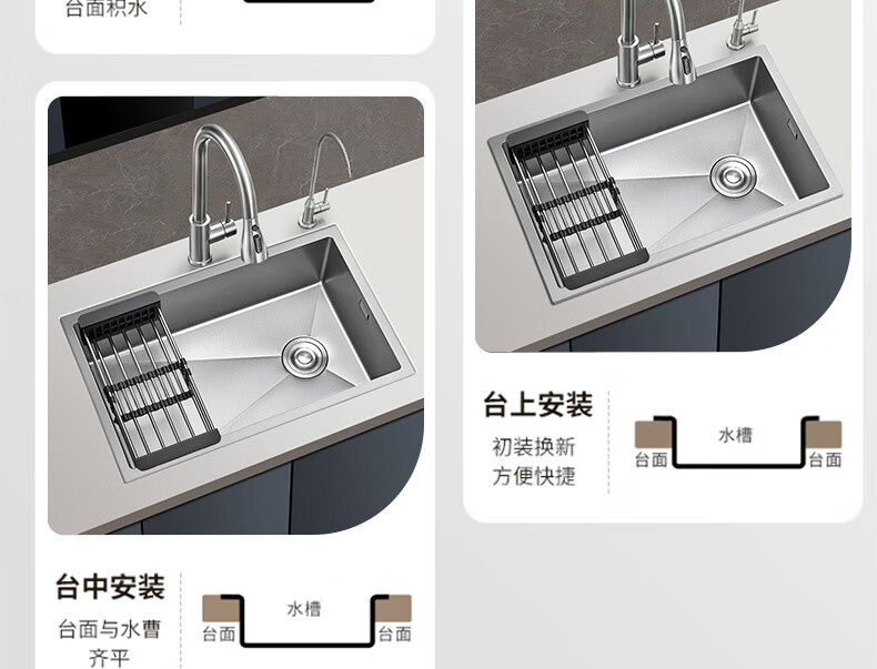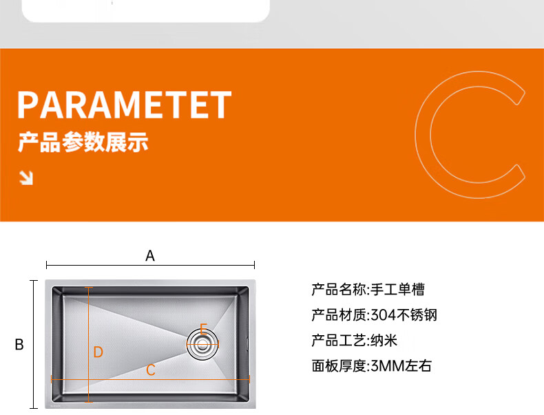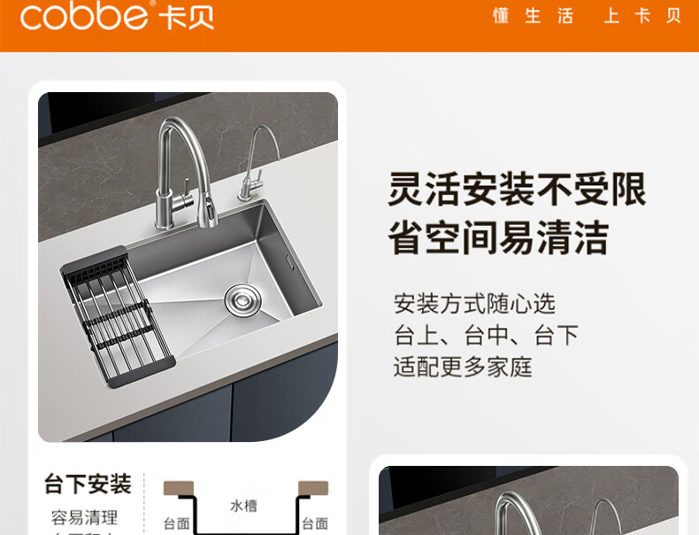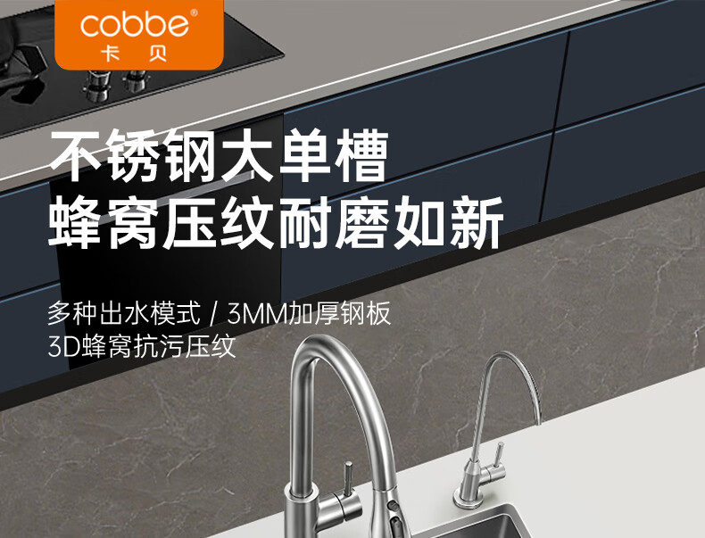卡贝(cobbe)厨房水槽手工加厚大单槽sus304不锈钢洗菜盘洗菜池洗碗洗菜一体盘