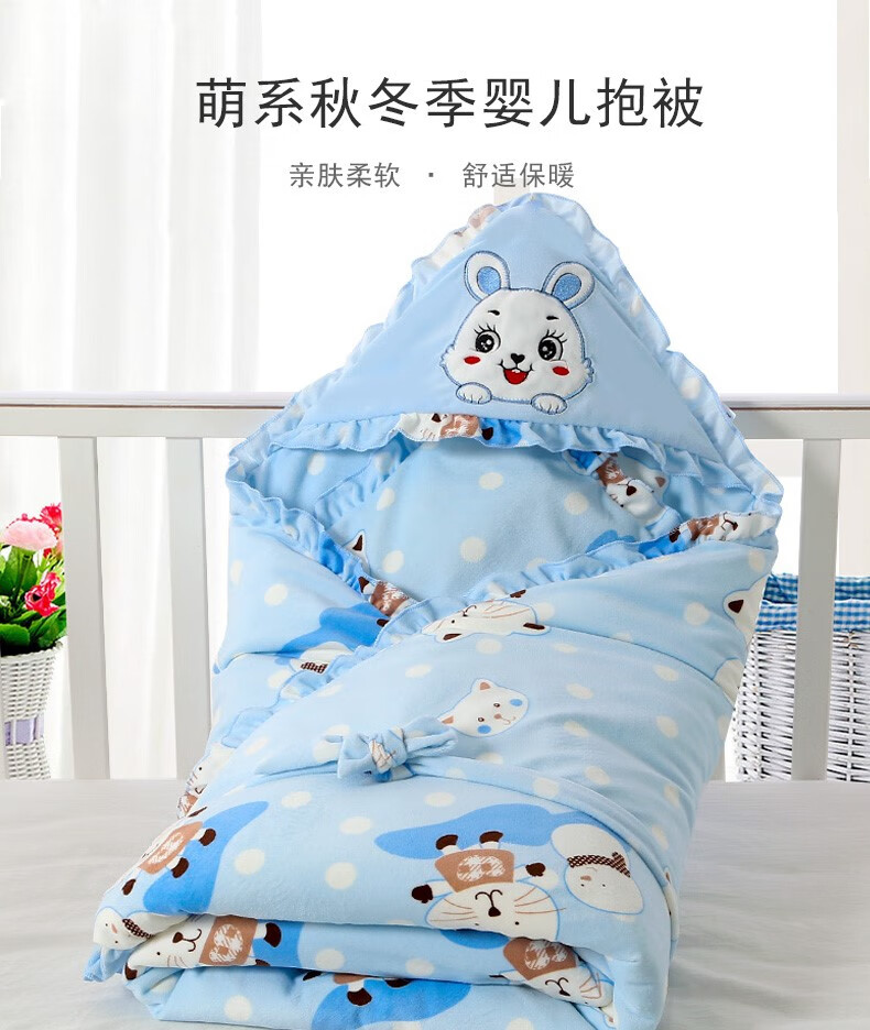 史黛拉新生儿抱被春秋冬婴儿抱毯宝宝冬季加厚保暖包被包巾用品襁褓被子 小兔黄-冬季可脱胆【加厚大】-9 0x0cm
