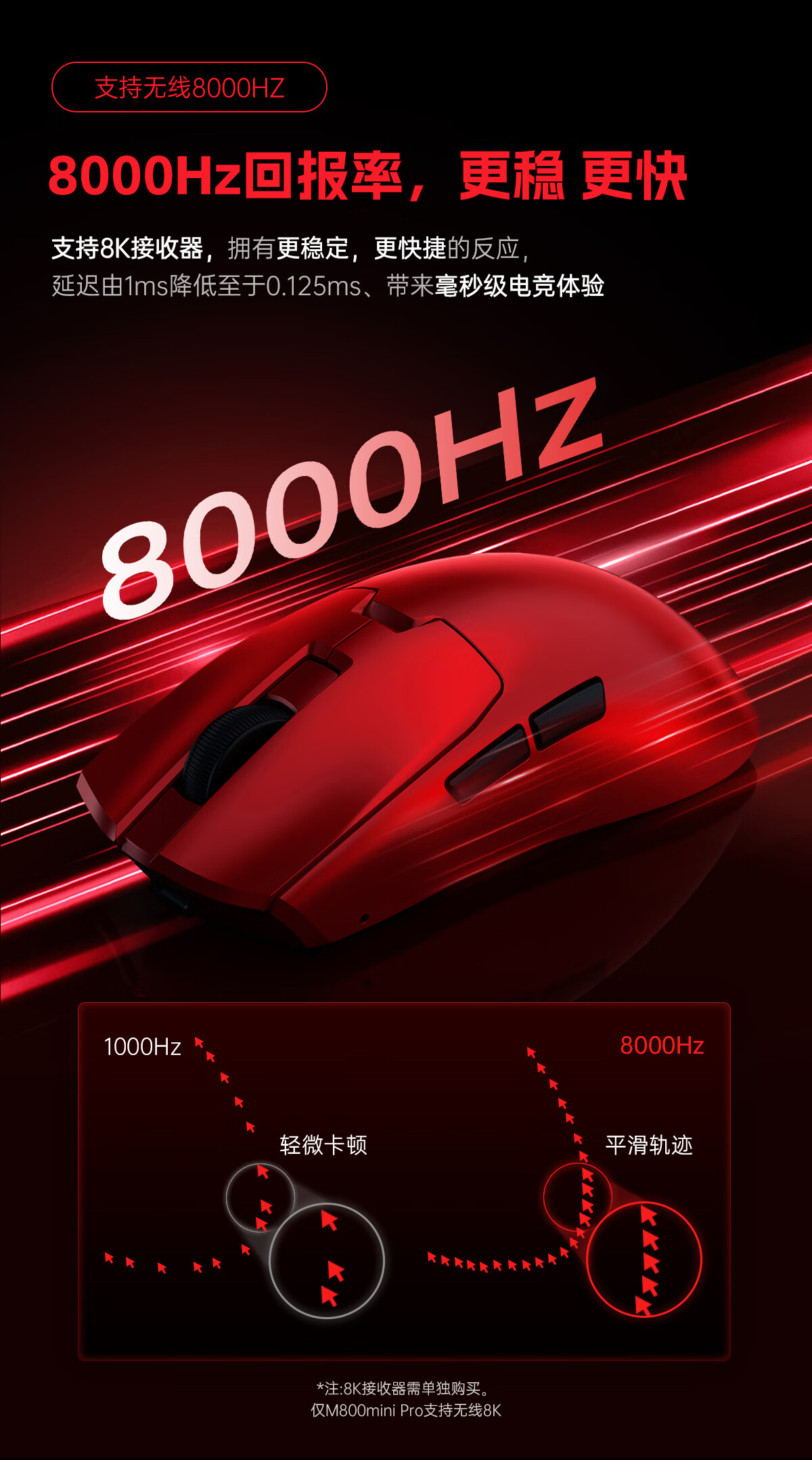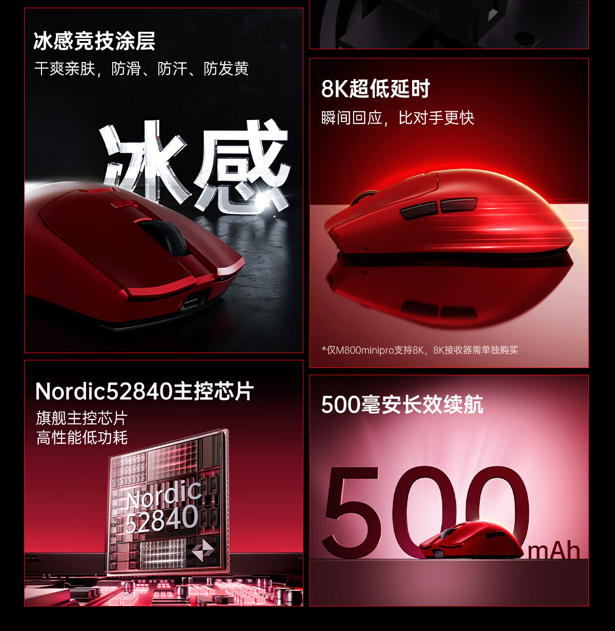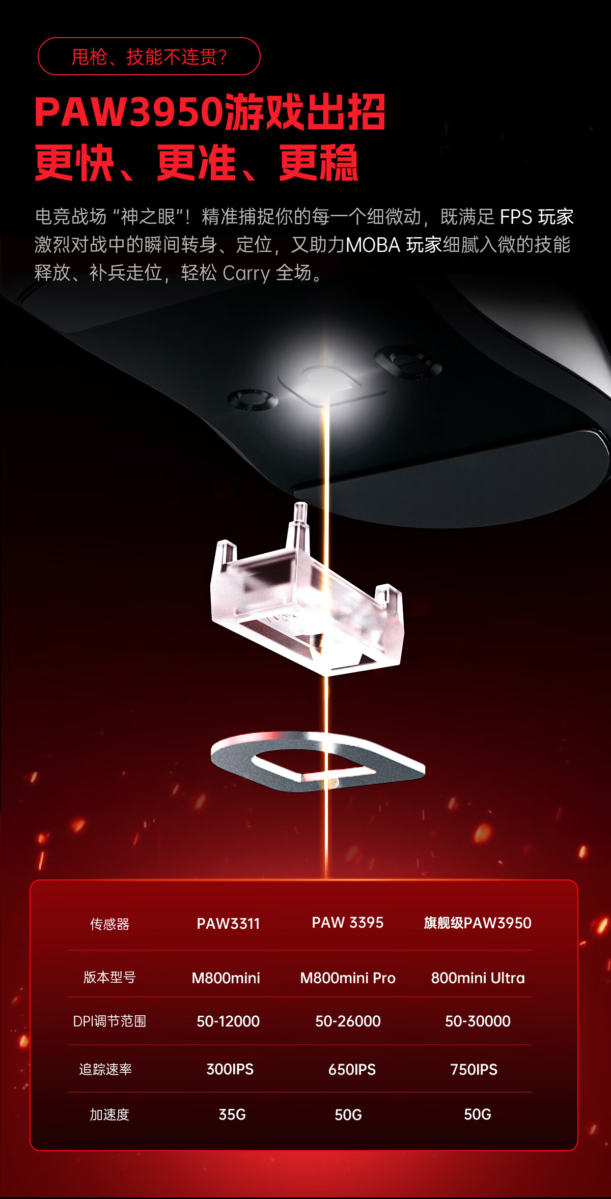 多彩(Delux)M800mini无线游戏鼠标电竞办公有线/蓝牙/2.4G三模PAW3395/3950无孔轻量化设计 M800mini Pro【3395+光微动】白