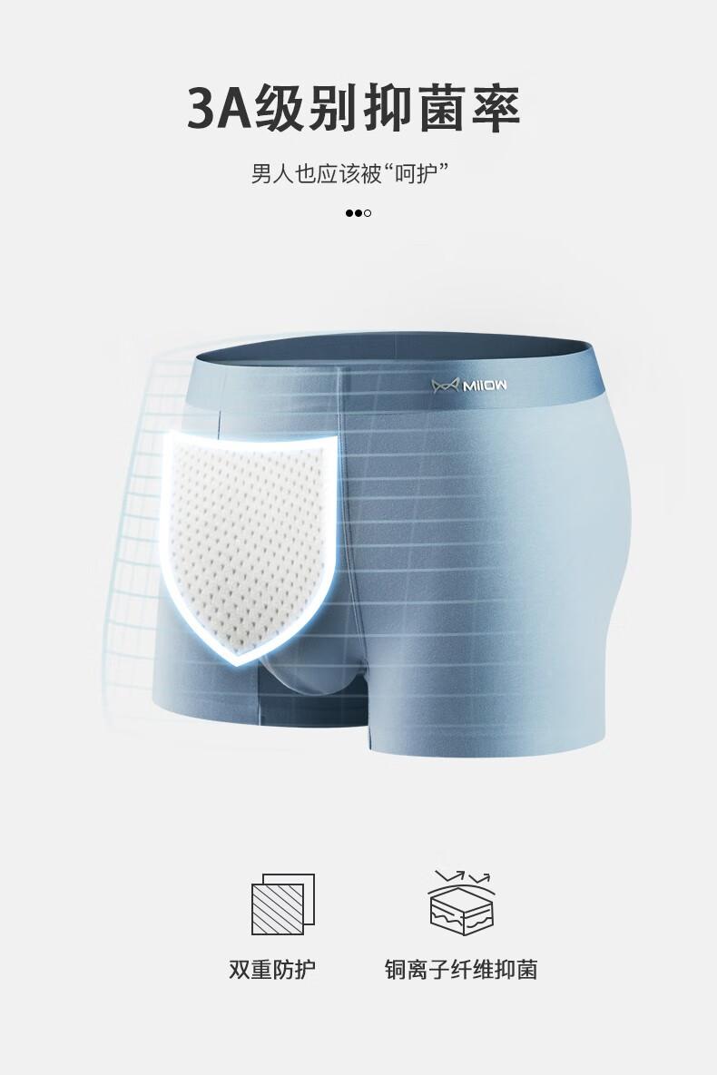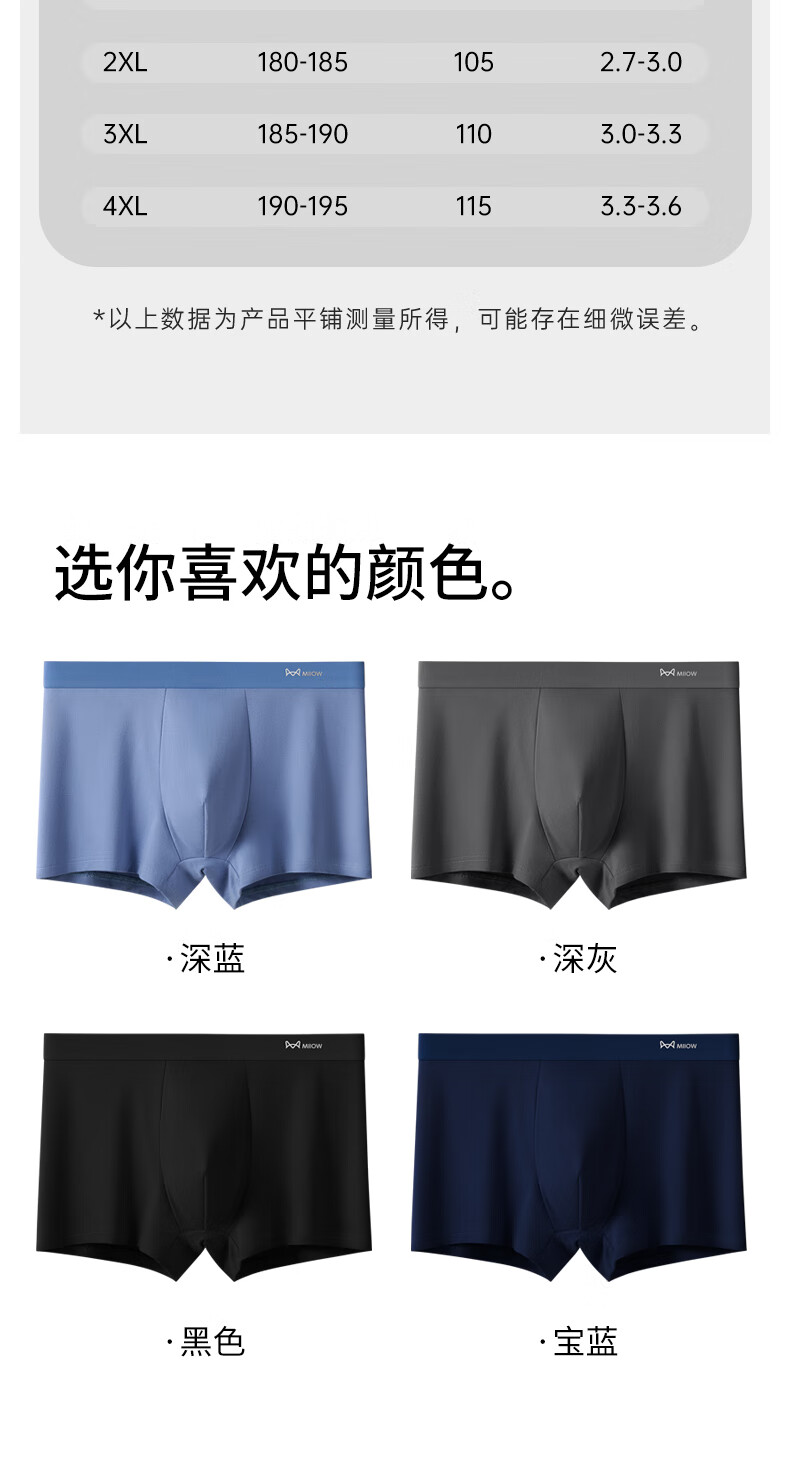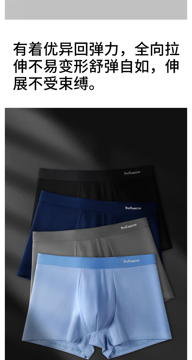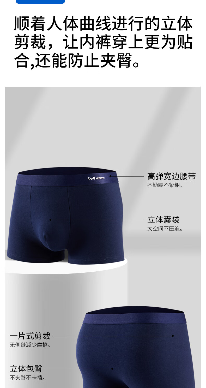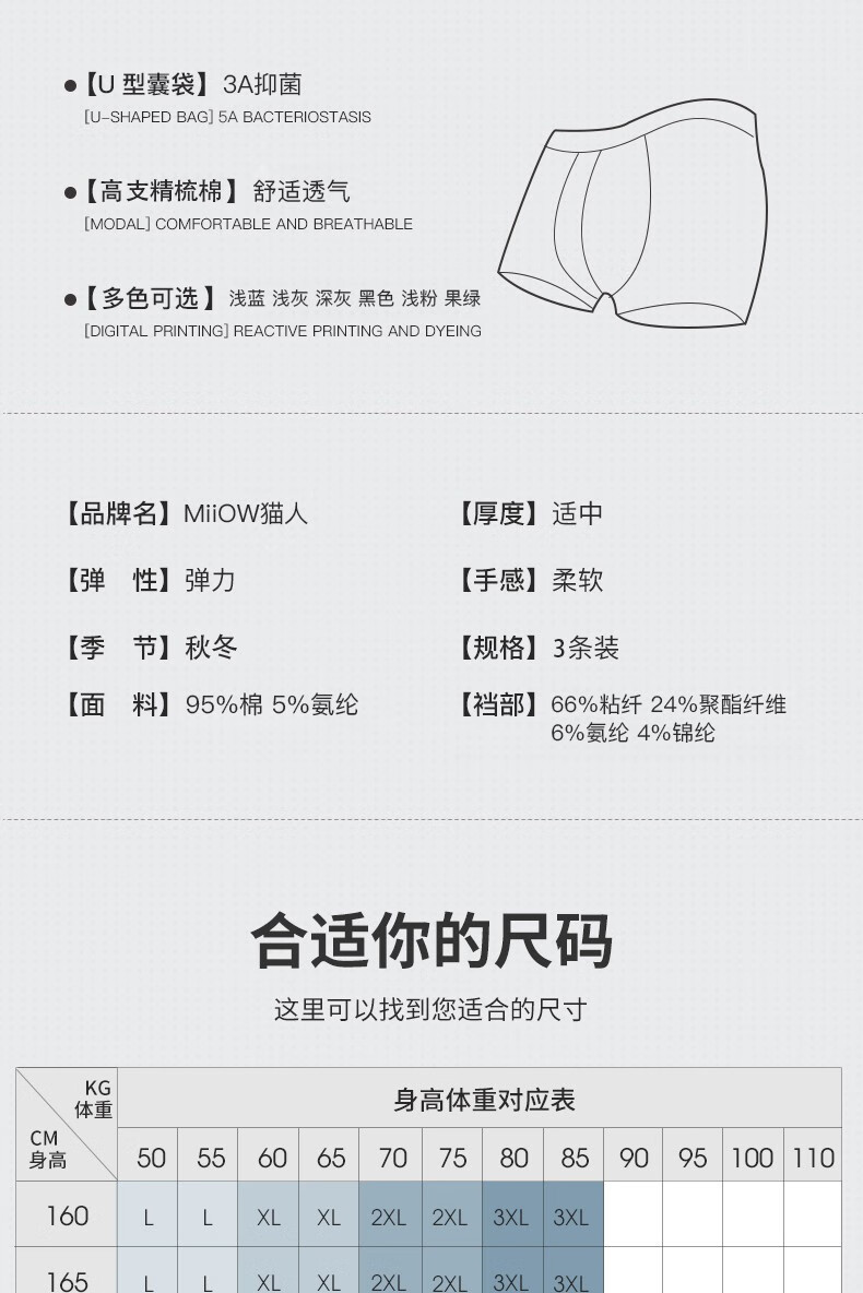 猫人内裤男士3条装50S无痕精梳棉莫抑菌裆干爽简约商务平角内裤 车缝纯棉:黑色+深灰+深蓝 3条 XL (参考体重110-125斤)