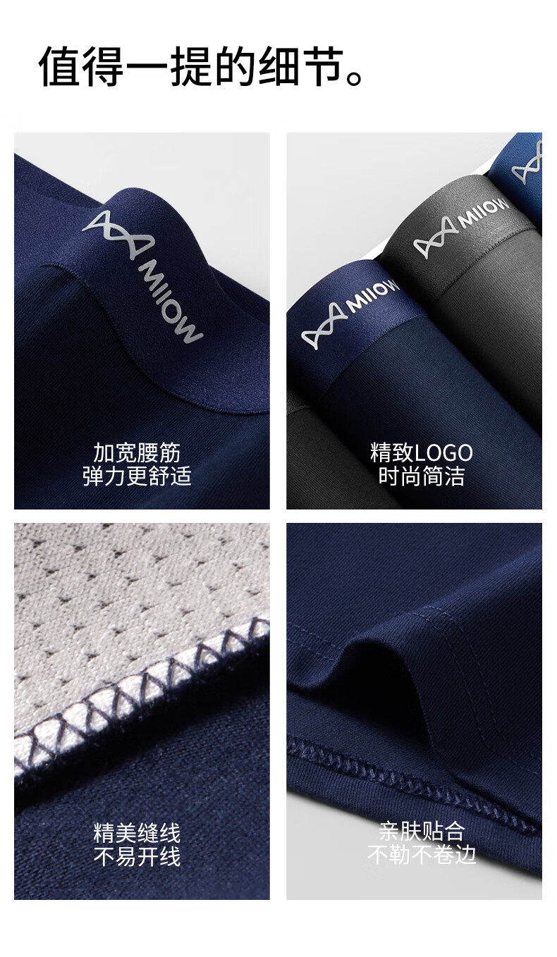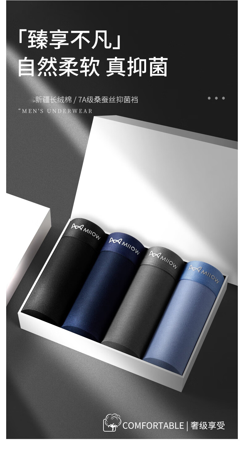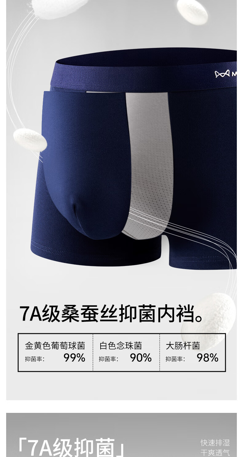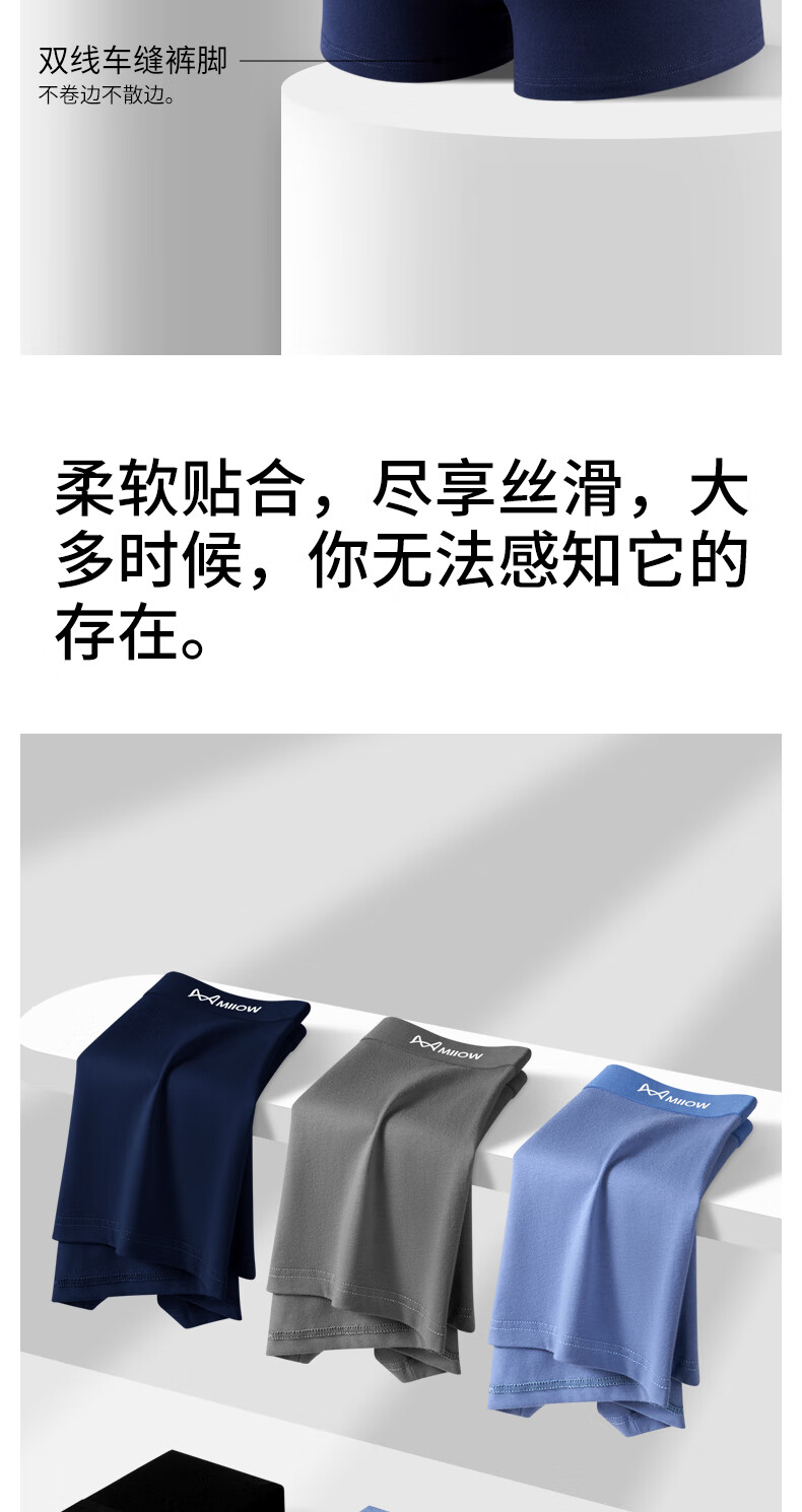 猫人内裤男士3条装50S无痕精梳棉莫抑菌裆干爽简约商务平角内裤 车缝纯棉:黑色+深灰+深蓝 3条 XL (参考体重110-125斤)