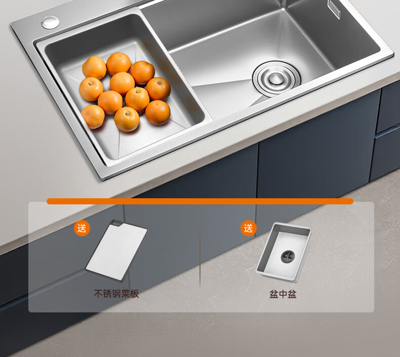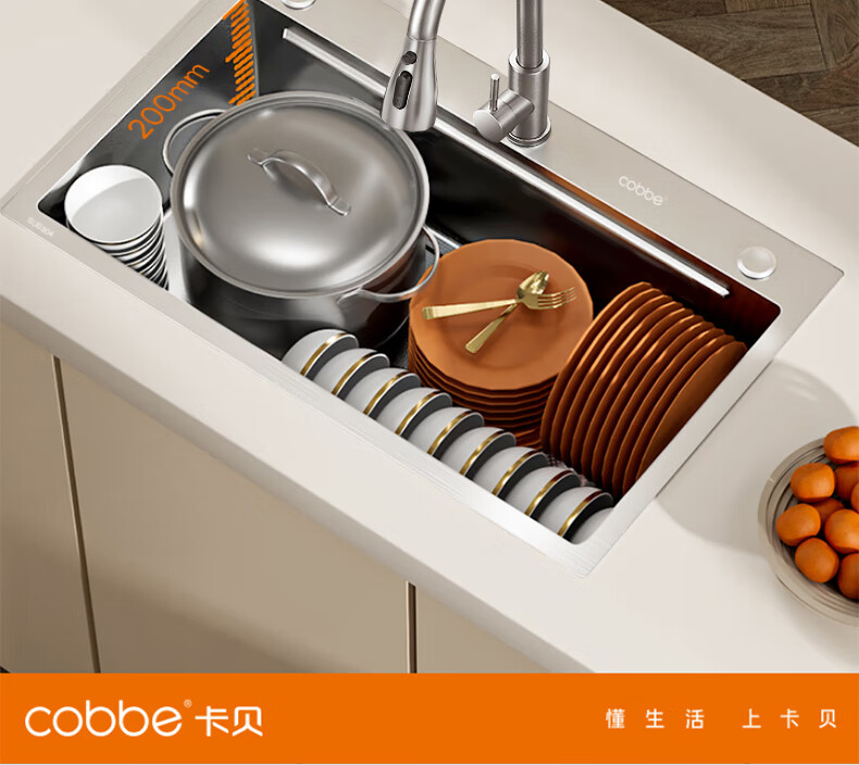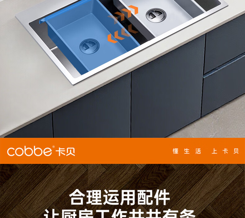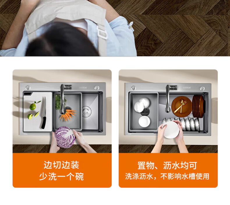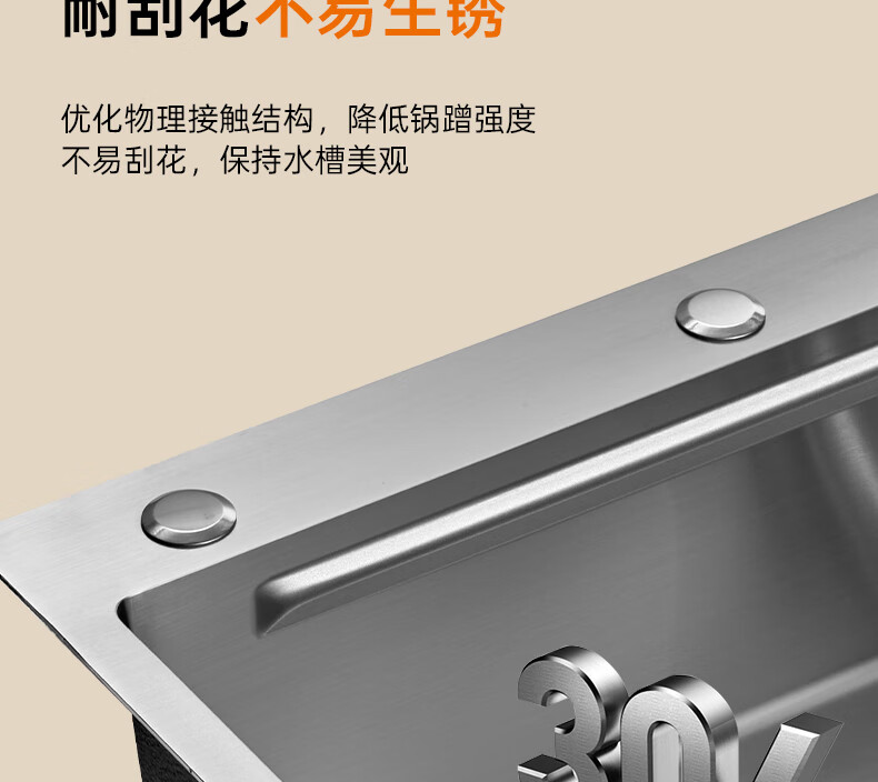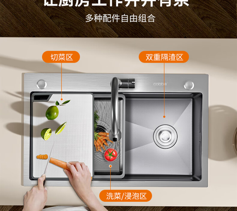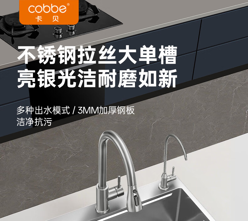 卡贝(cobbe)厨房水槽手工加厚大单槽sus304不锈钢洗菜盘洗菜池洗碗洗菜一体盘