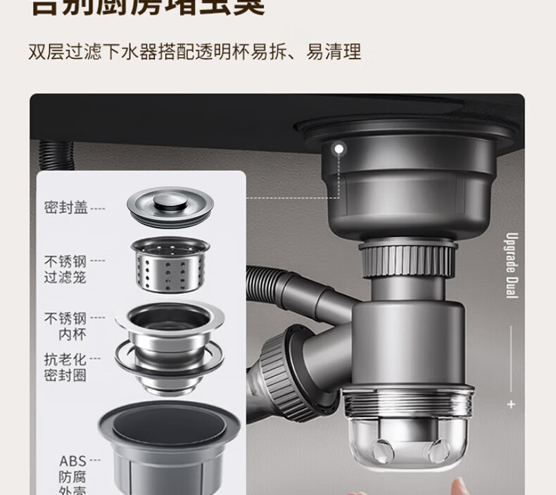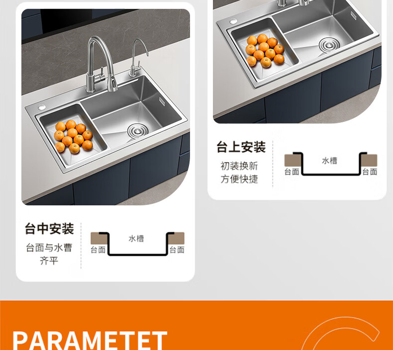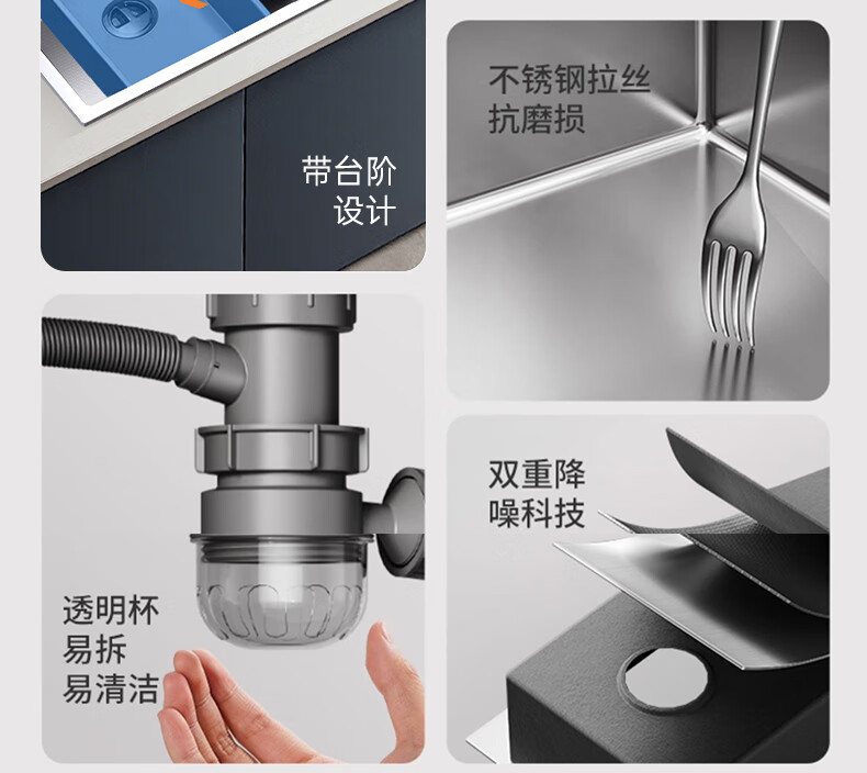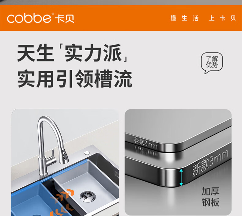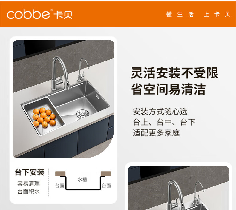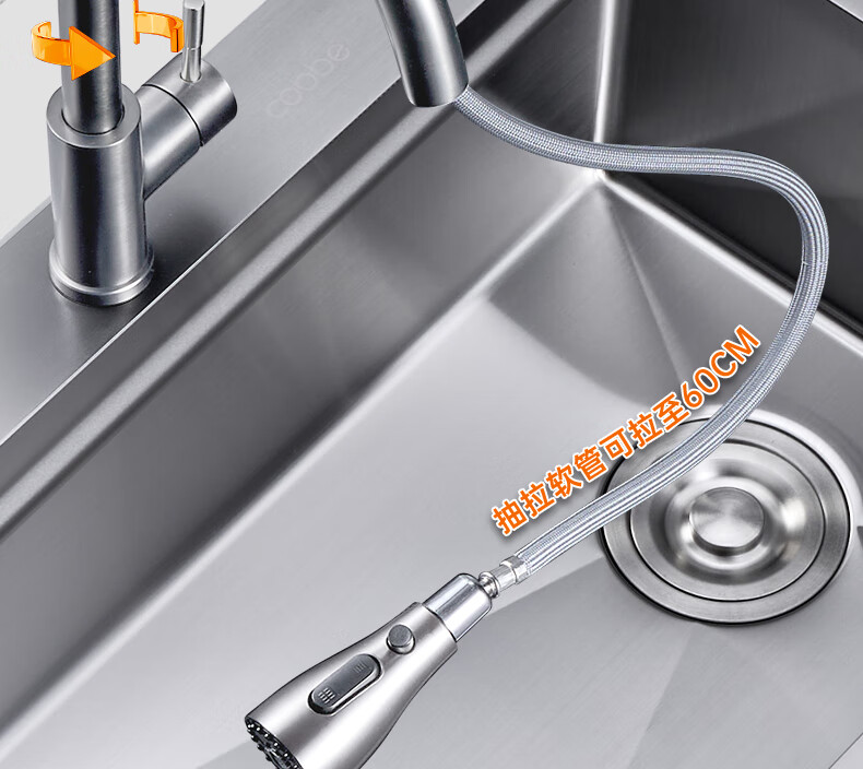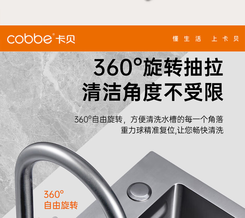卡贝(cobbe)厨房水槽手工加厚大单槽sus304不锈钢洗菜盘洗菜池洗碗洗菜一体盘