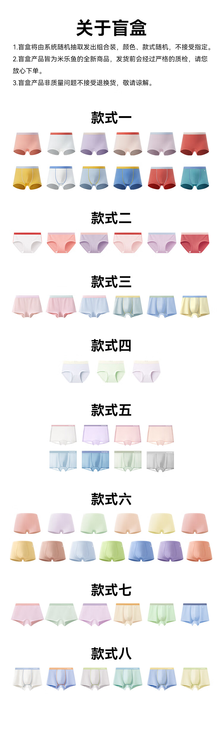 米乐鱼【惊喜福袋】2MYR儿童内裤A类男女童三角平角短裤盲盒礼包随机色 男童-盲盒-随机款式- 3条 110