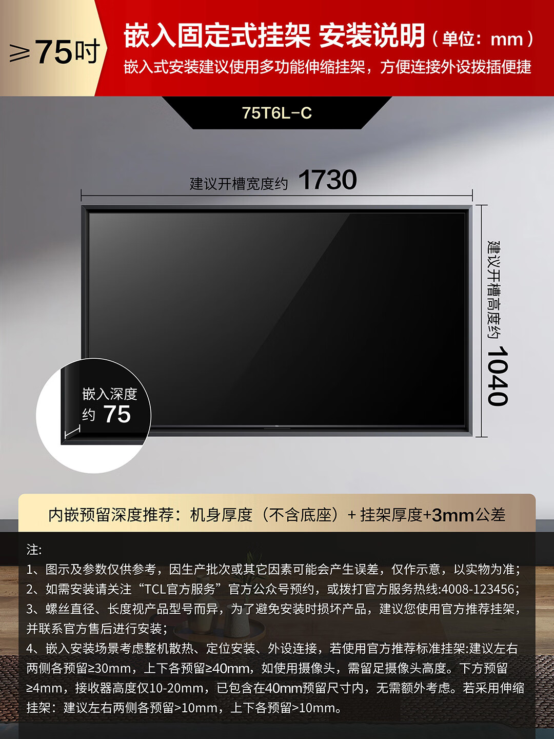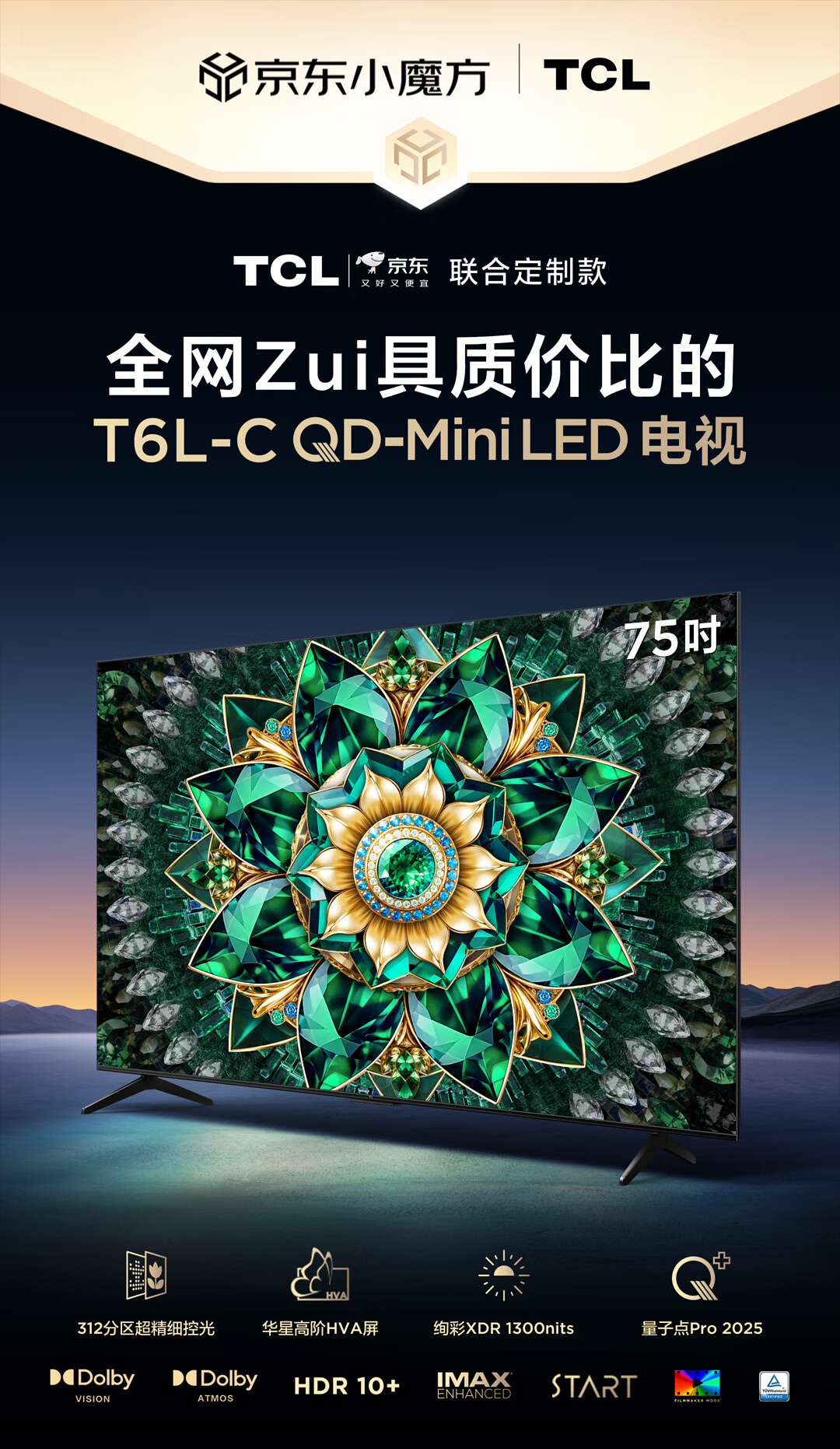 TCL电视 75T6L-C 75英寸 QD-Mini LED QLED量子点 绚彩XDR 1300nits DeepSeek 国家补贴