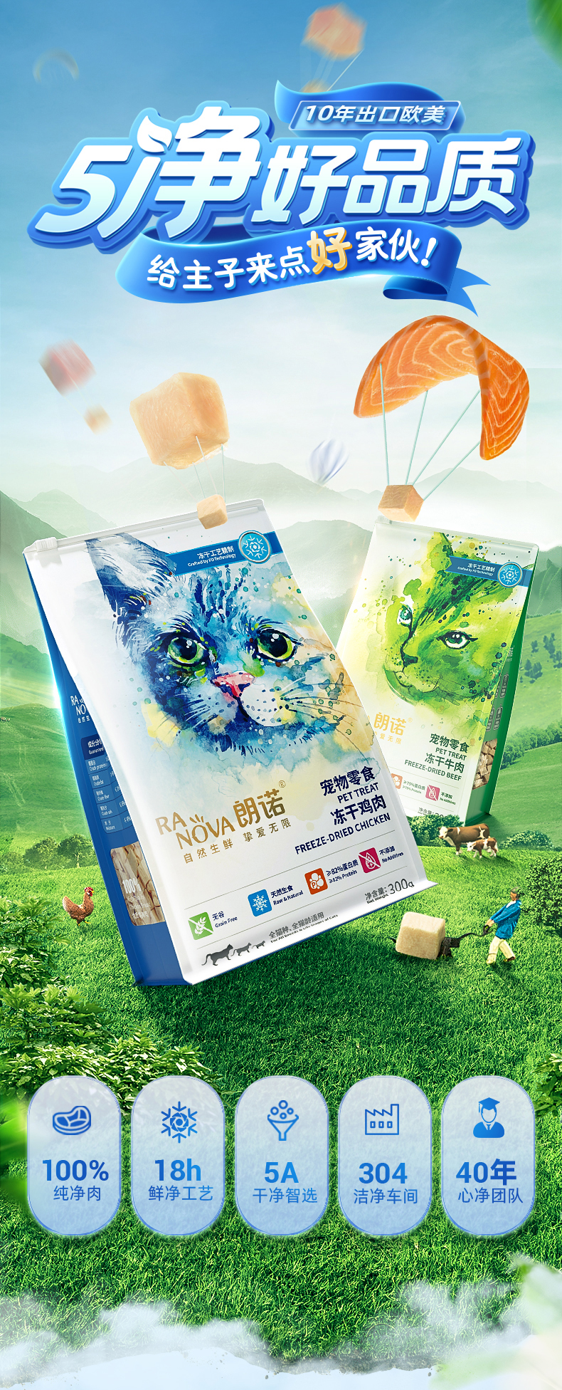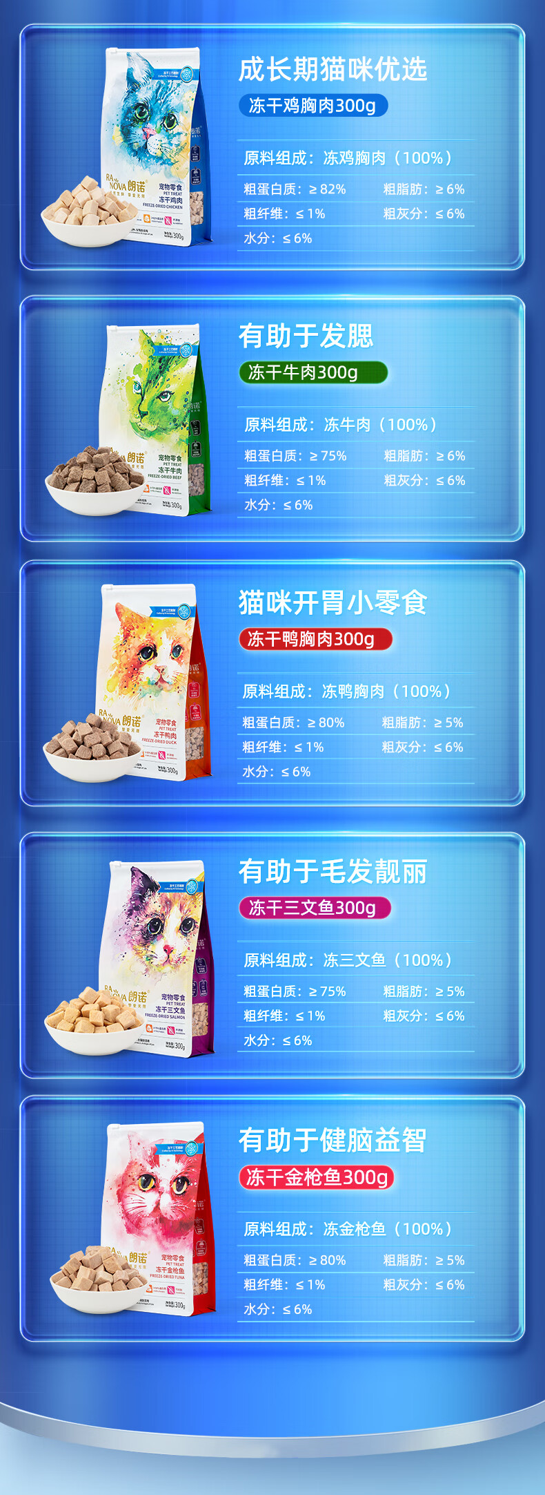朗诺冻干猫零食冻干粮成猫肉冻干零食宠物食品猫粮 【100%纯肉】冻干鸡肉300g