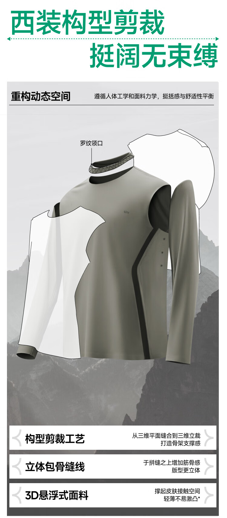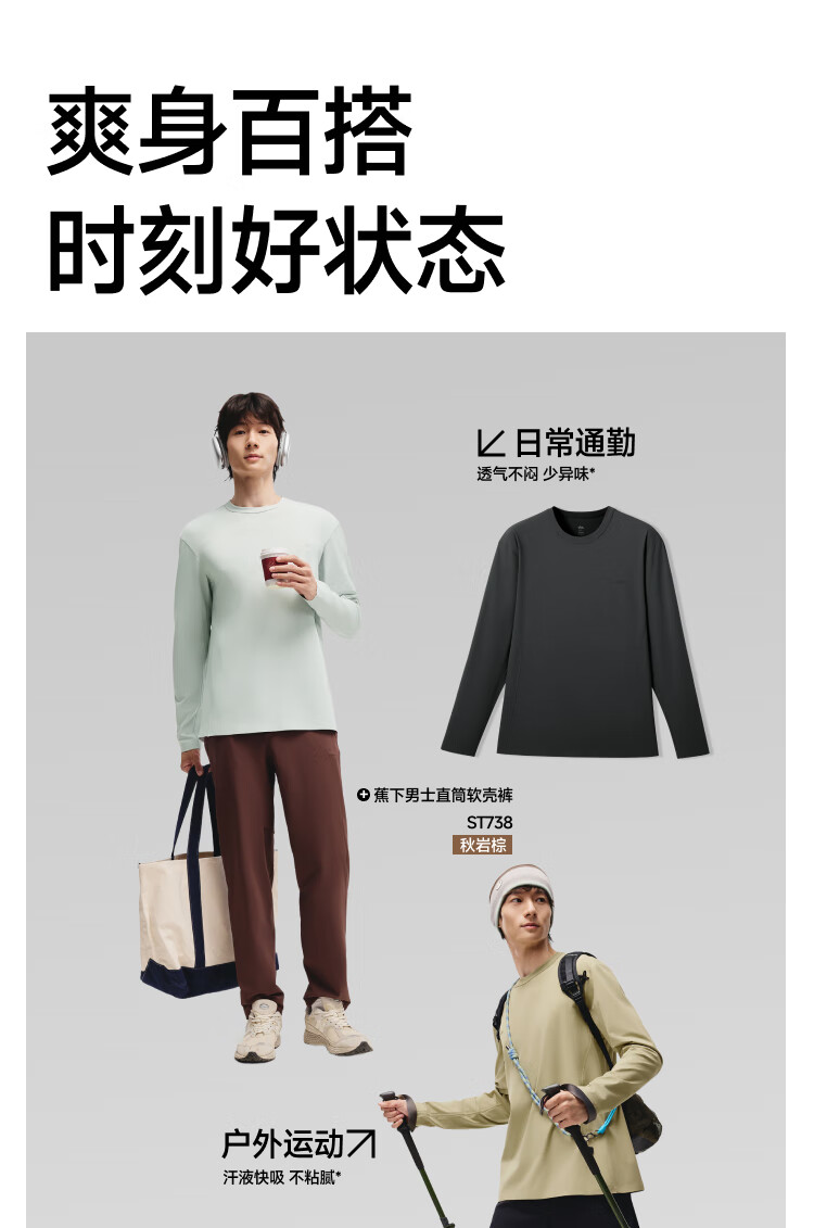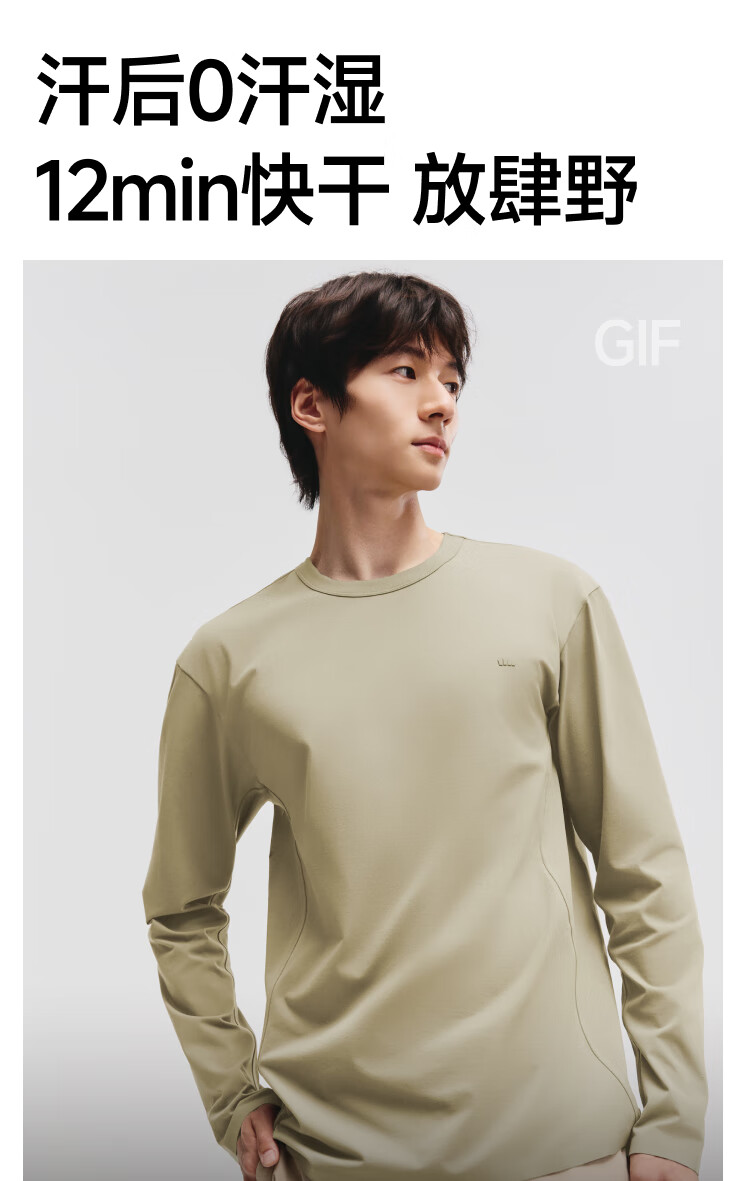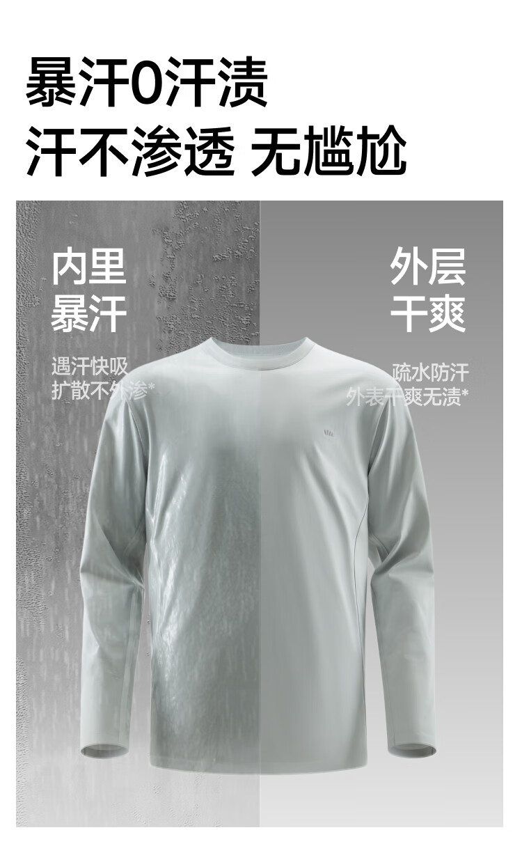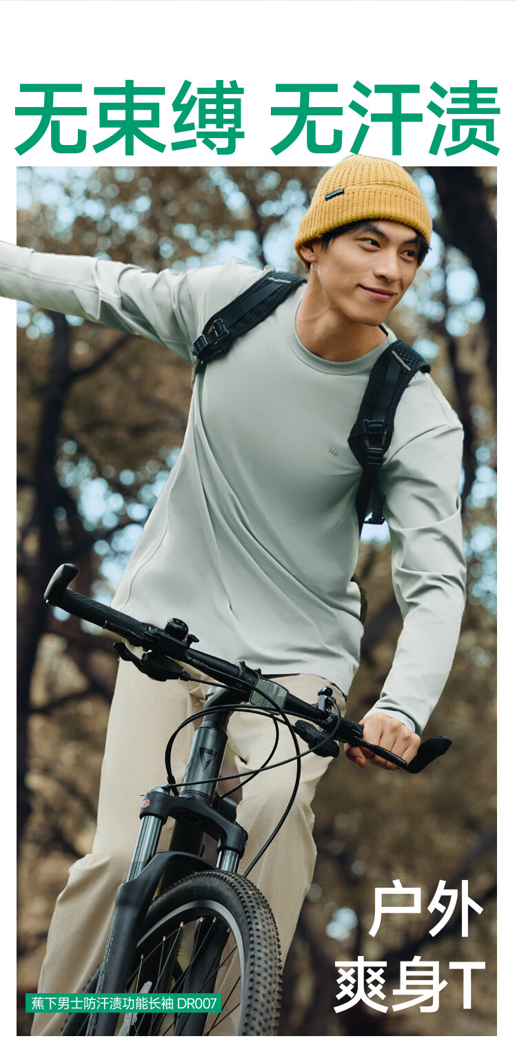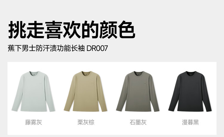蕉下(beneunder)长袖T恤男士打底衫户外防汗渍宽松舒适圆领DR007漫暮黑M