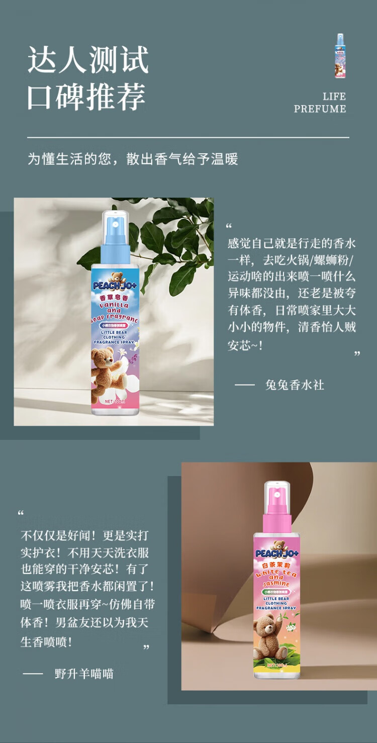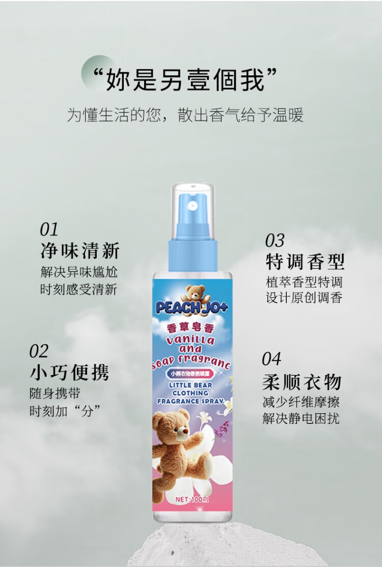 PEACH JO+【超值爆款】简约风花香玉龙茶香抗静电衣物香氛喷雾衣服香水 小苍兰100ml