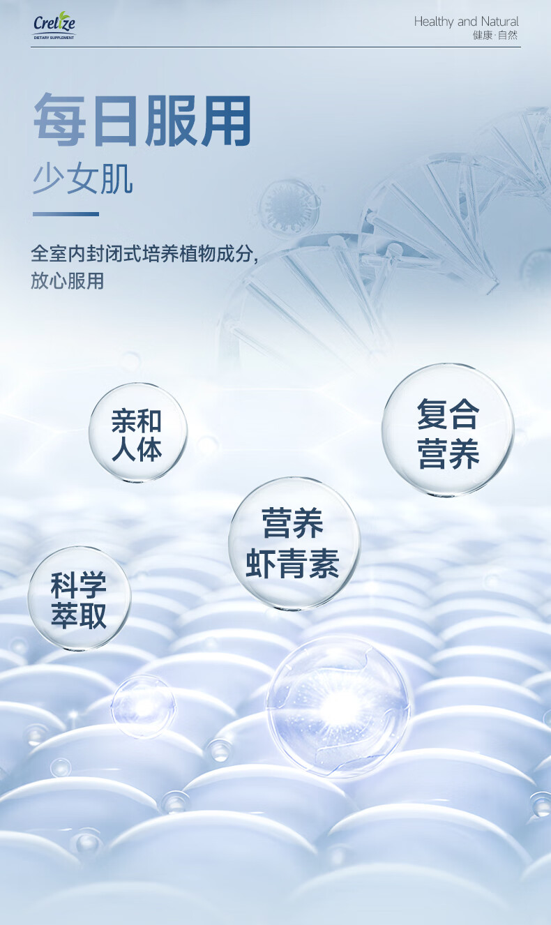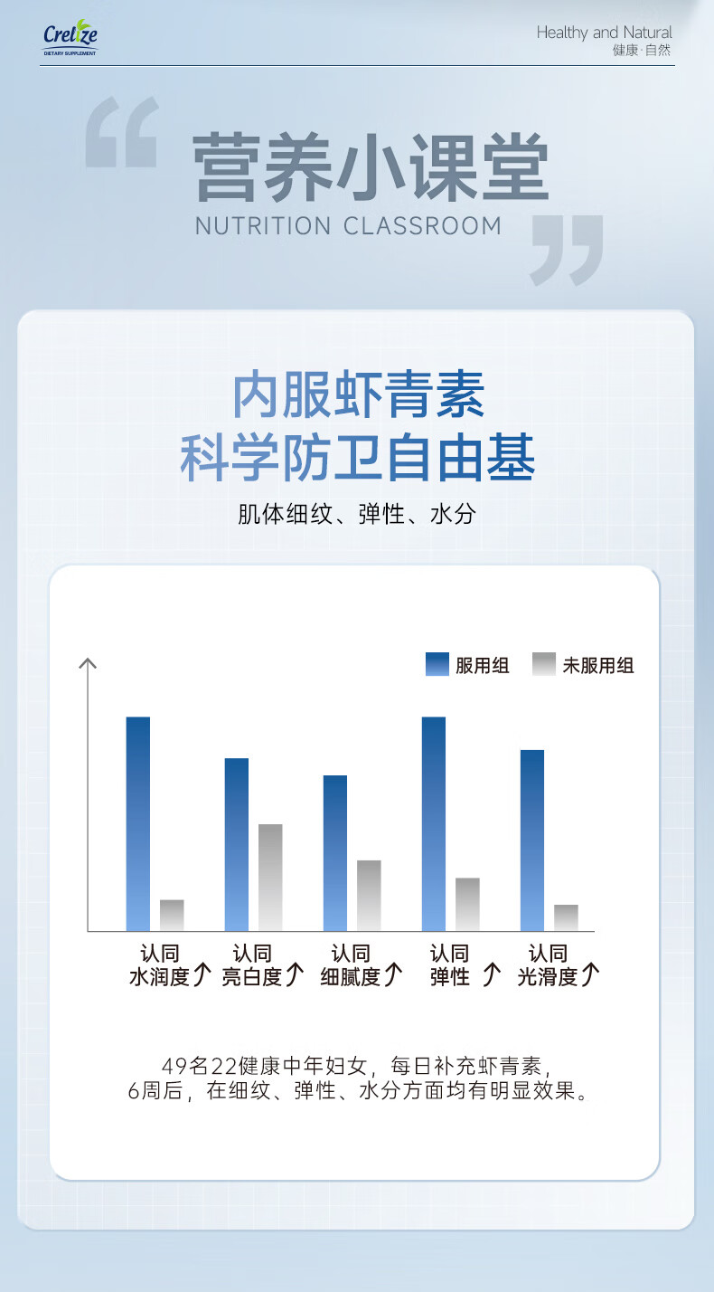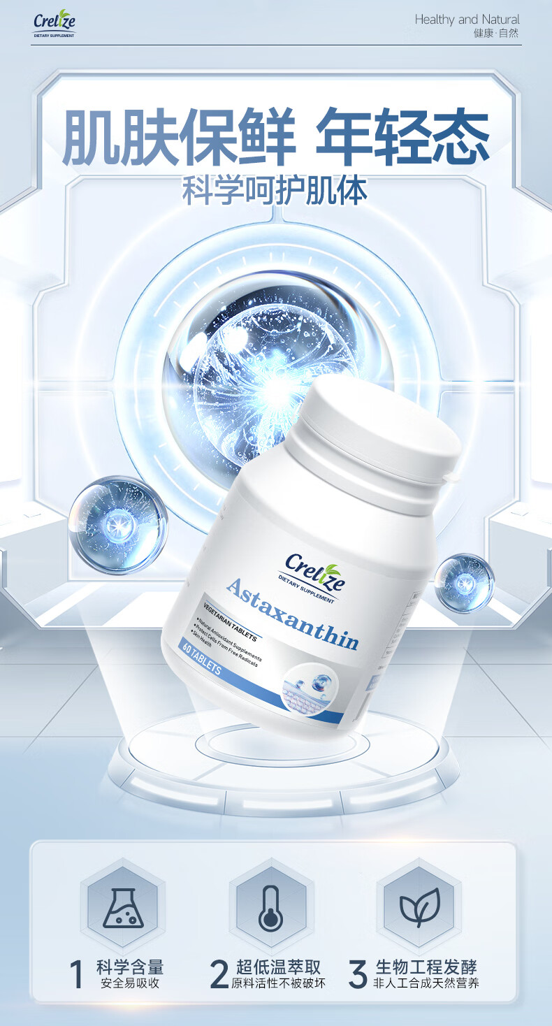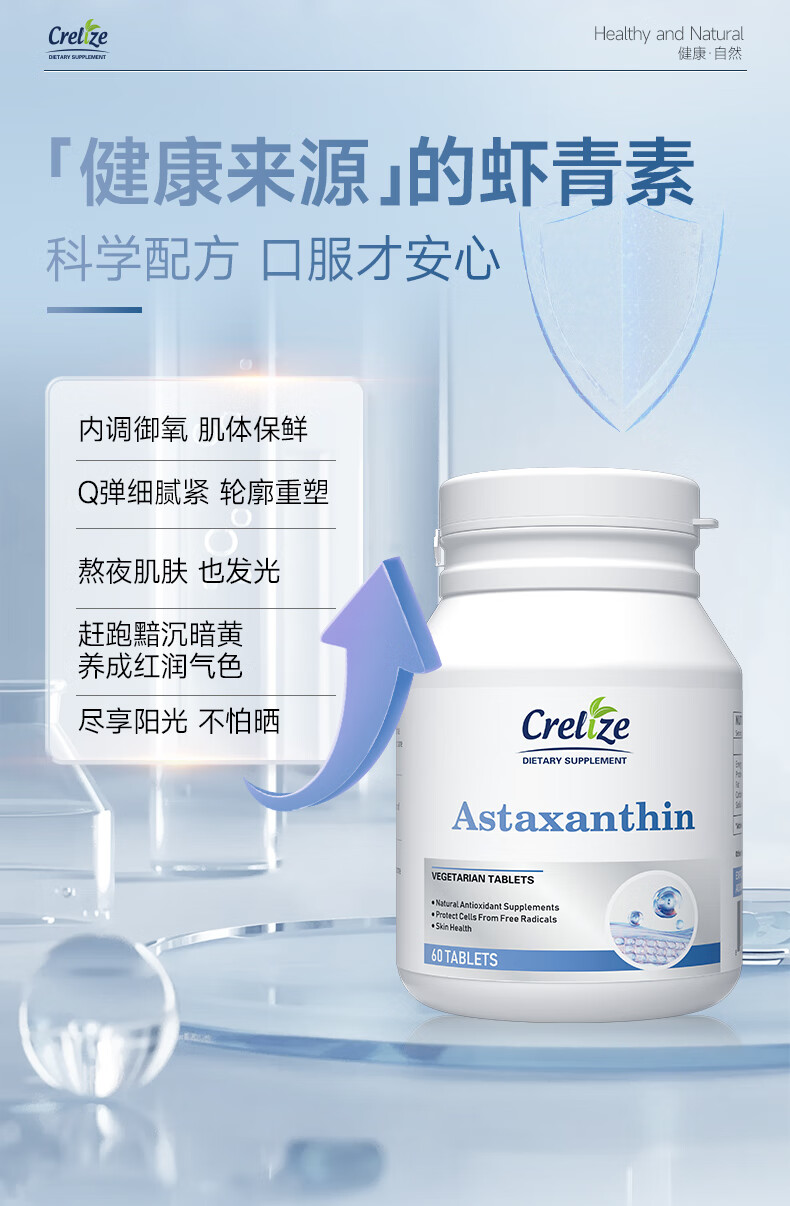 CRELIZE美国进口虾青素红球藻保鲜亮肤御龄氧化美白丸美容养颜焕亮1瓶
