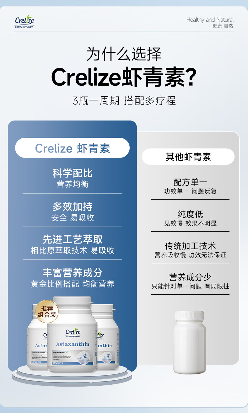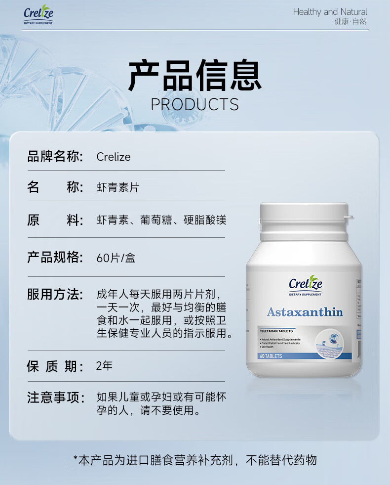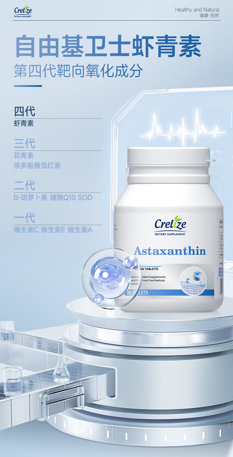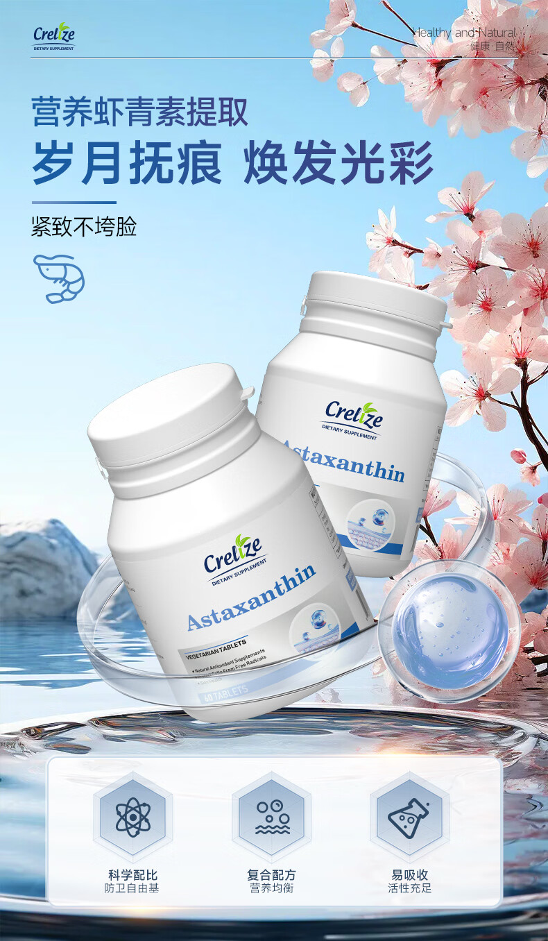 CRELIZE美国进口虾青素红球藻保鲜亮肤御龄氧化美白丸美容养颜焕亮1瓶