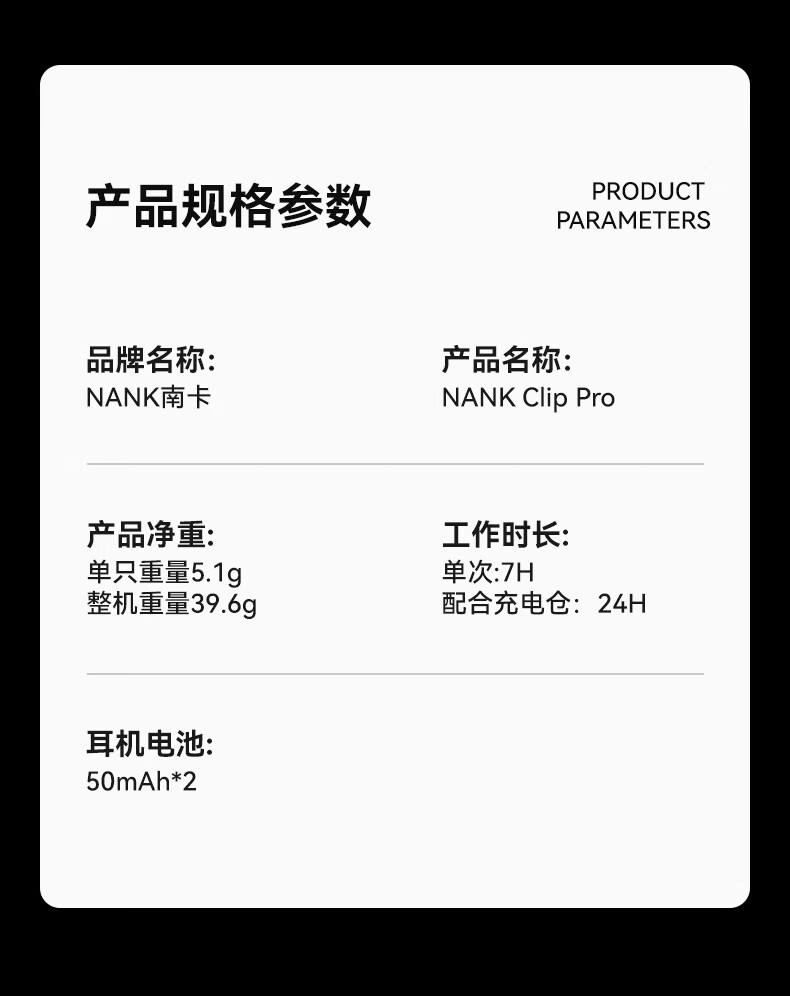南卡(NANK)Clip Pro耳夹式真无线蓝牙耳机 不入耳开放式耳机运动跑步防水游戏通话降噪 黑色