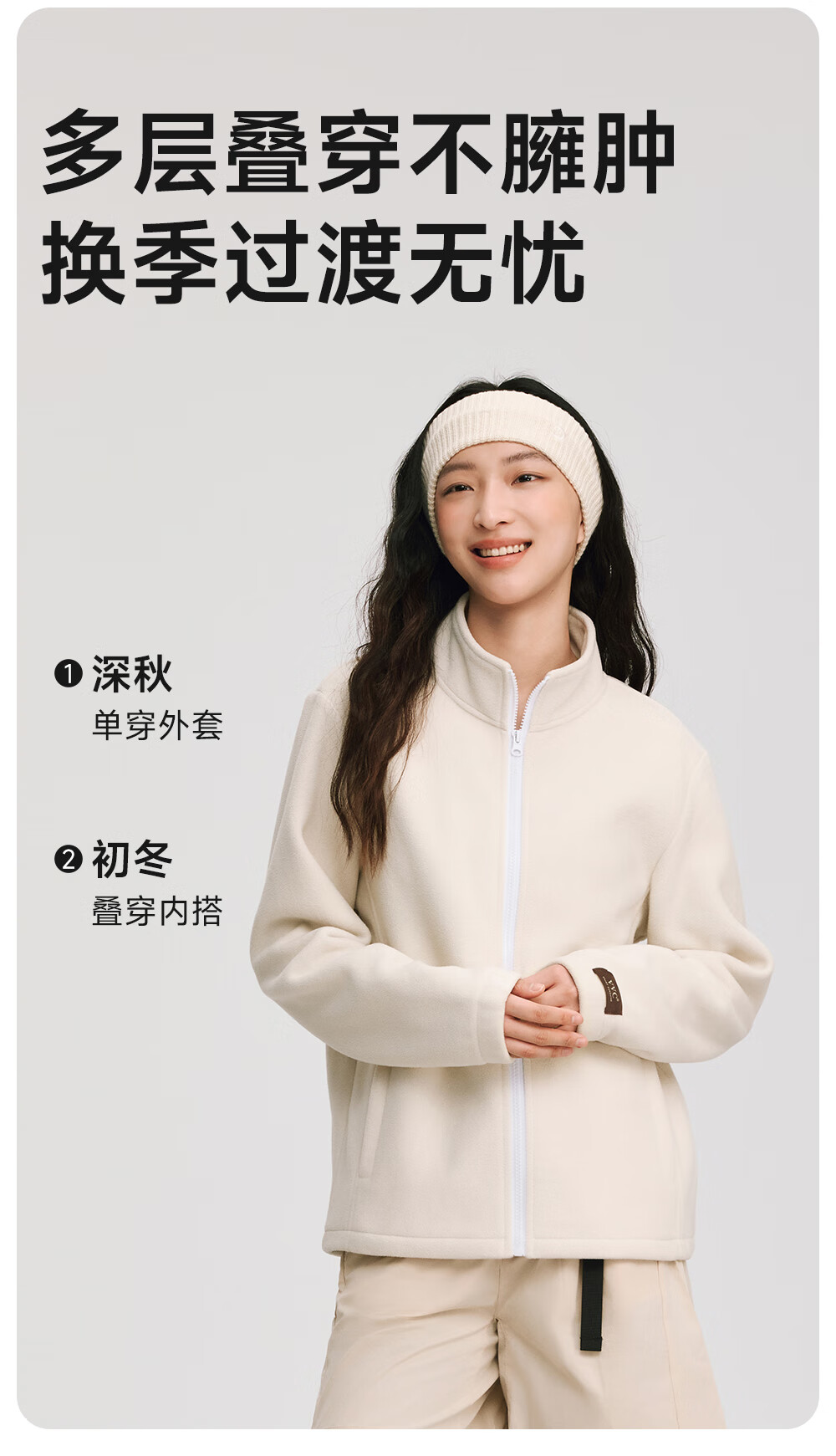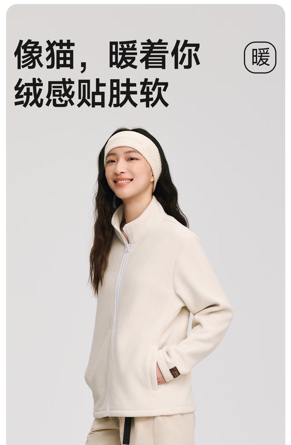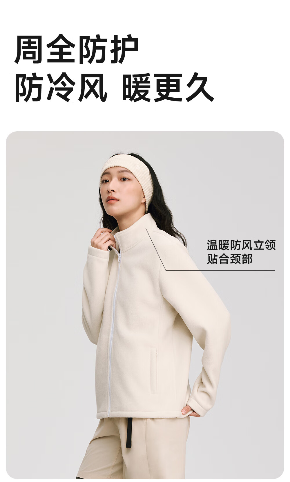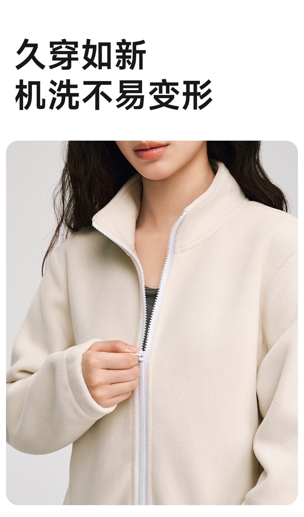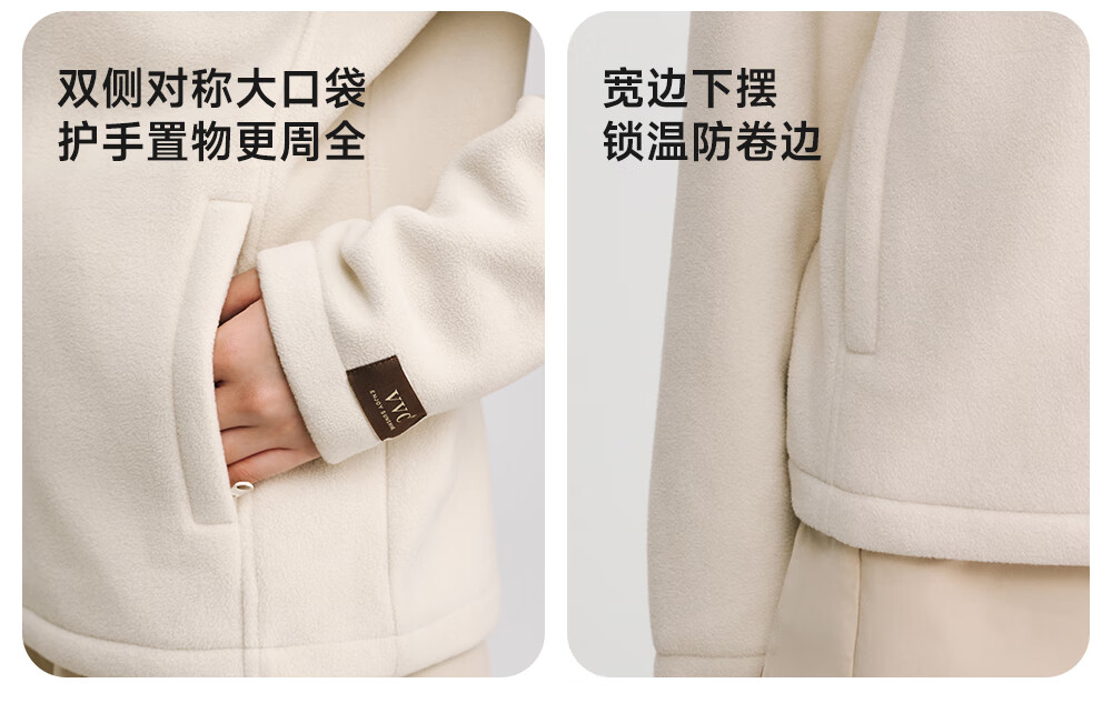 VVC外套女双面锁温摇粒绒2025冬季保暖摇粒绒开衫立领拉链上衣 云柔白 XL