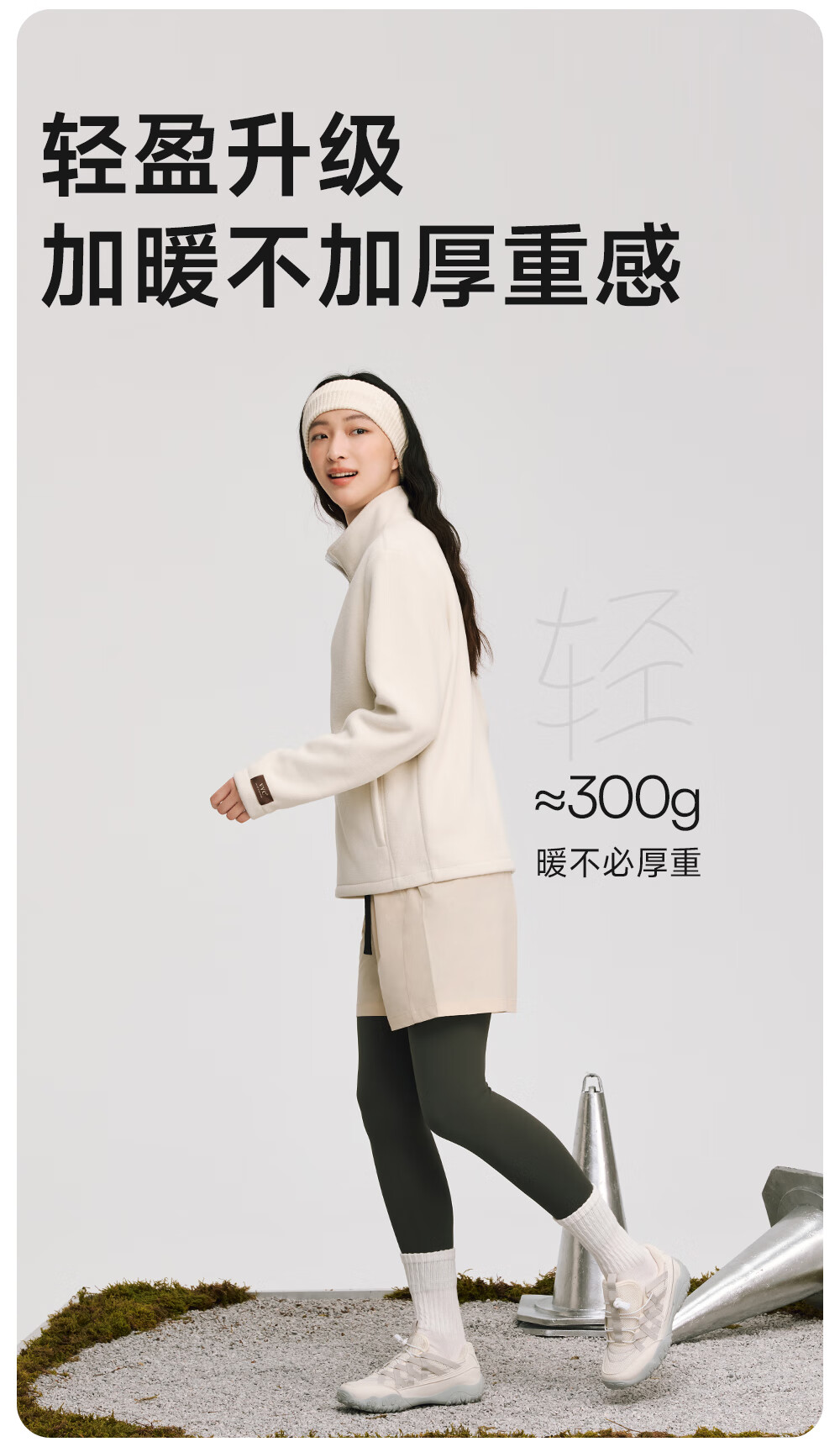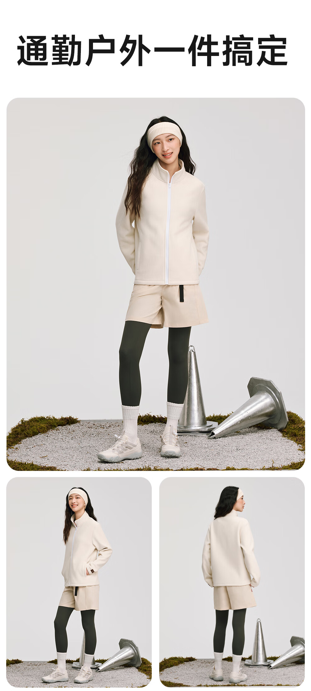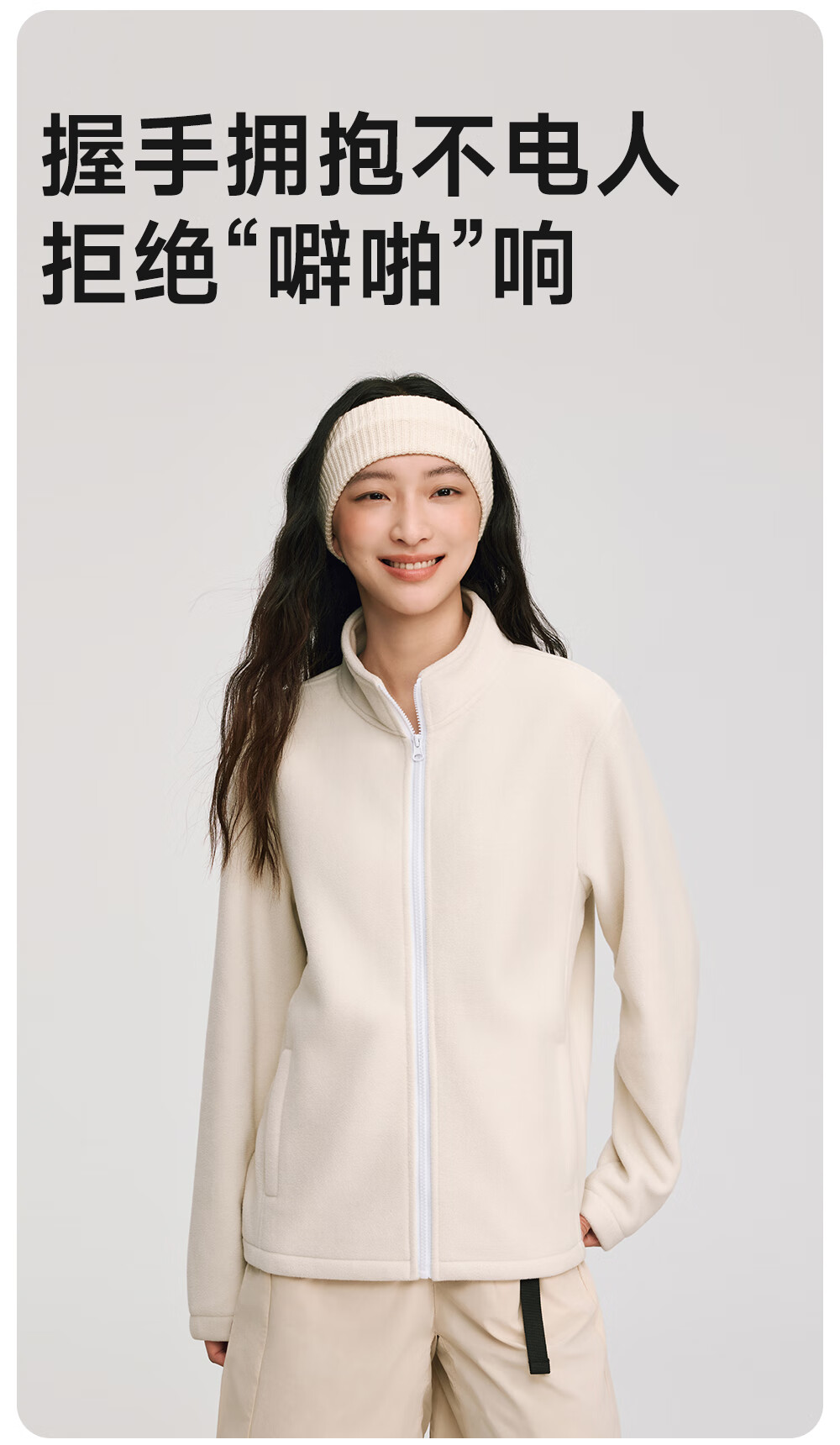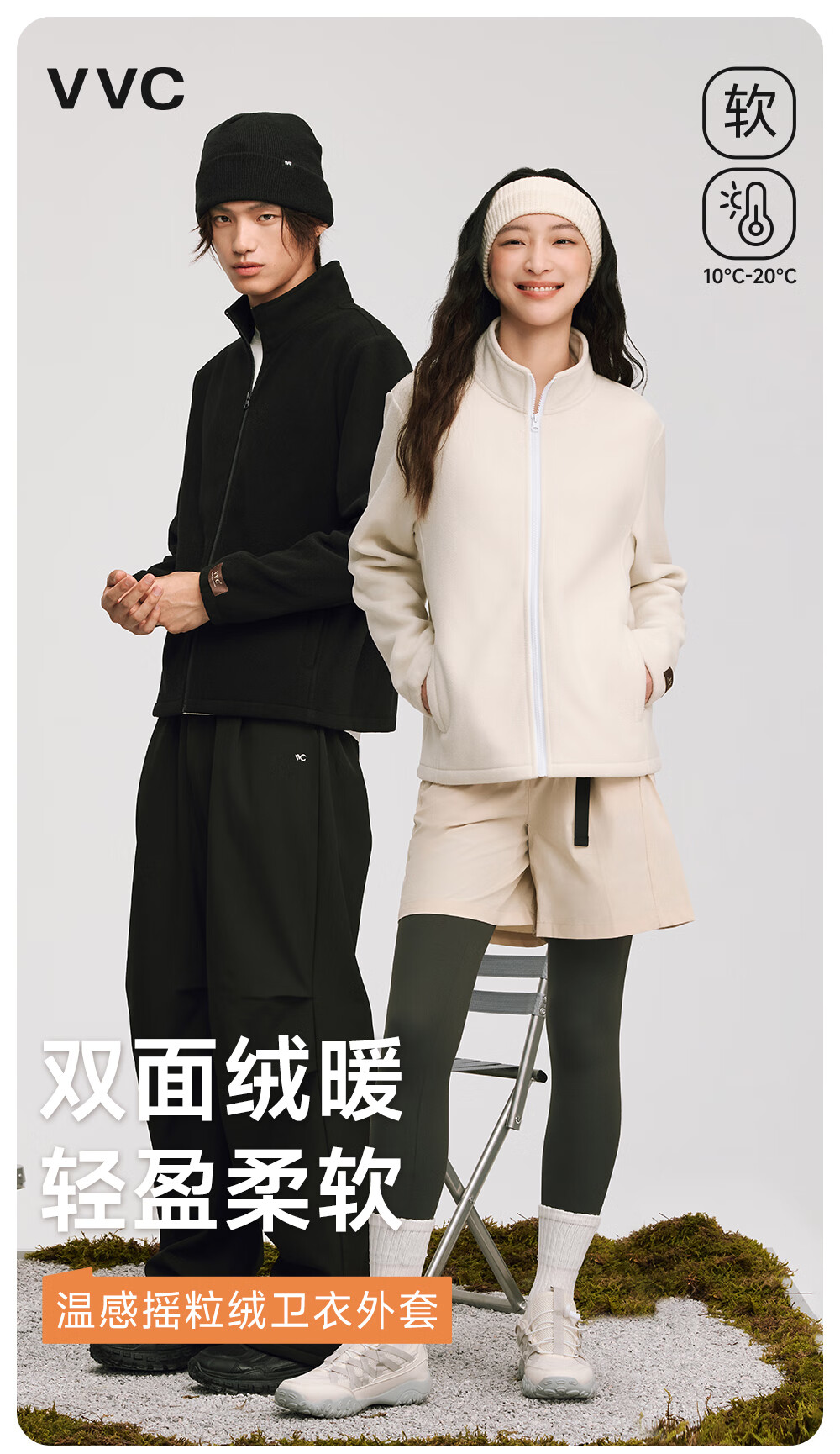 VVC外套女双面锁温摇粒绒2025冬季保暖摇粒绒开衫立领拉链上衣 云柔白 XL