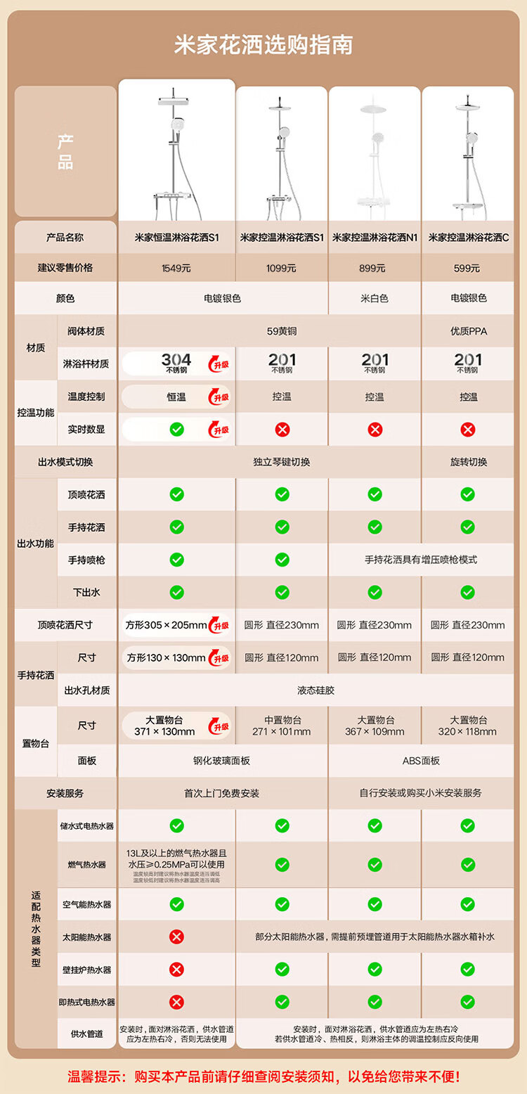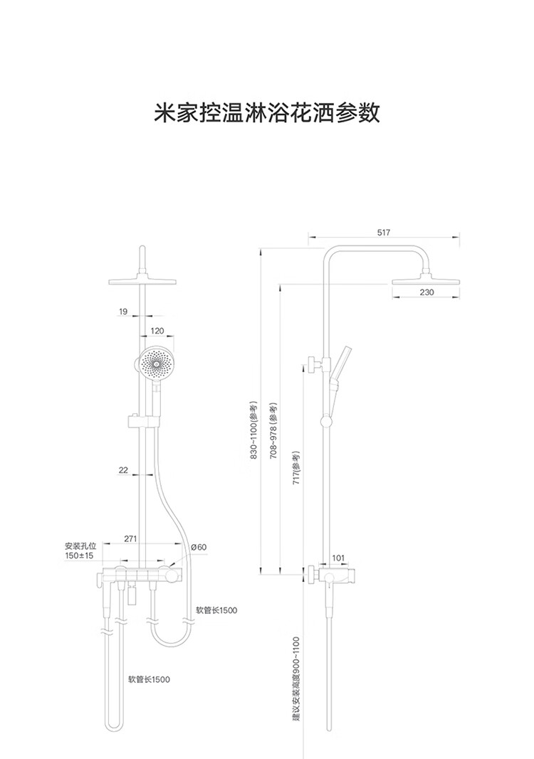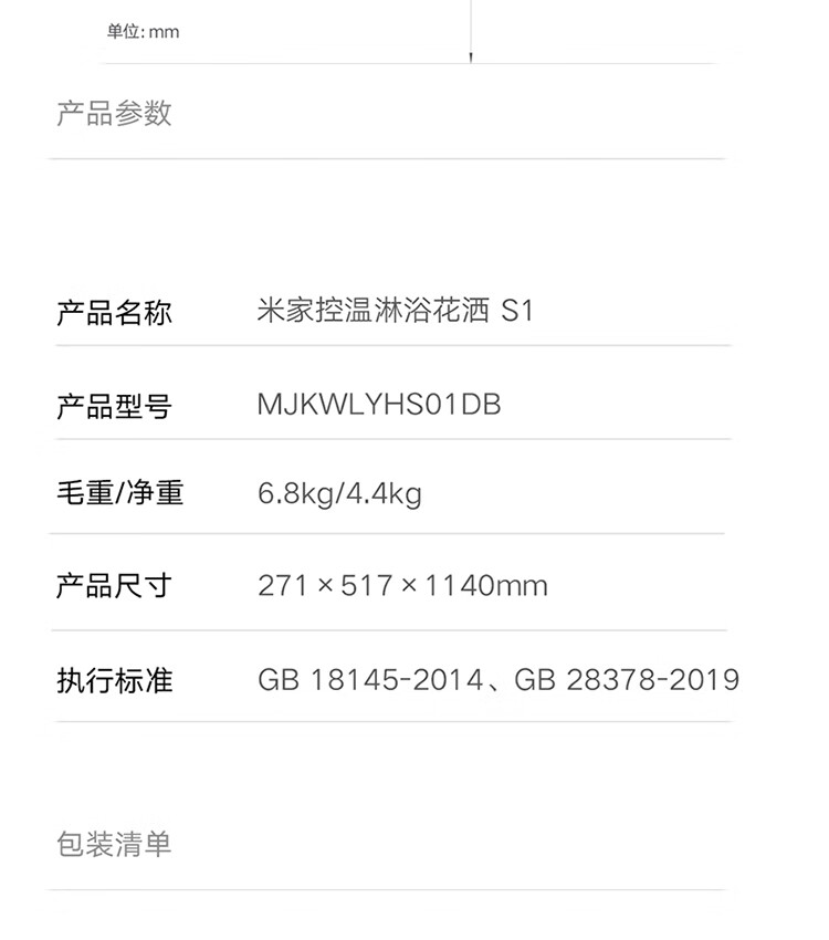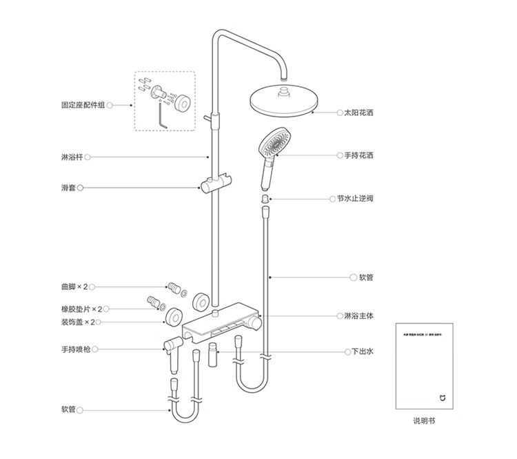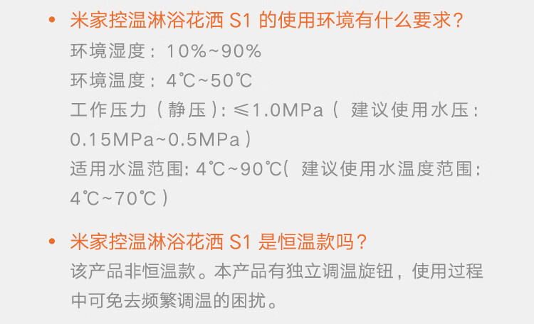 米家控温淋浴花洒S1 花洒套装淋浴套装卫生间家用淋浴器