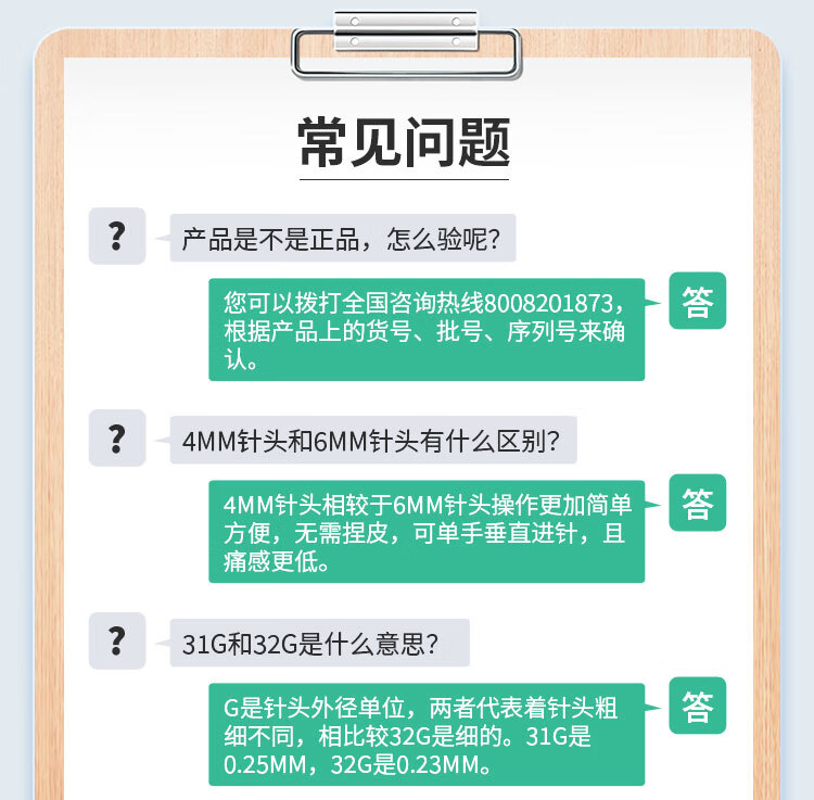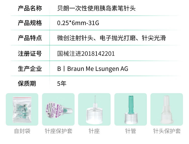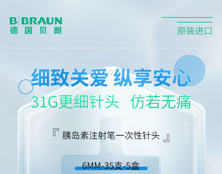 贝朗(B|BRAUN)原装进口胰岛素针头 胰岛素注射笔一次性针头 6mm*7支/盒 5盒 G31
