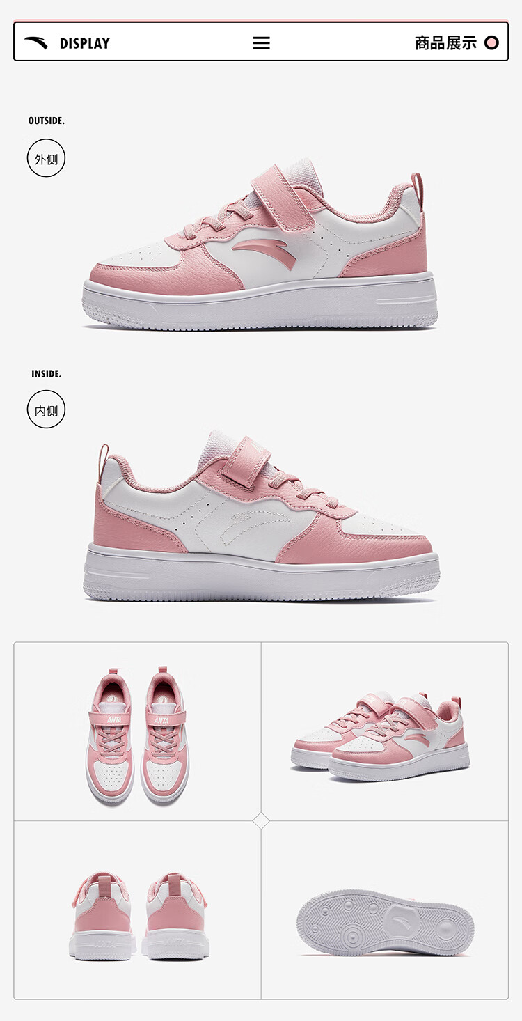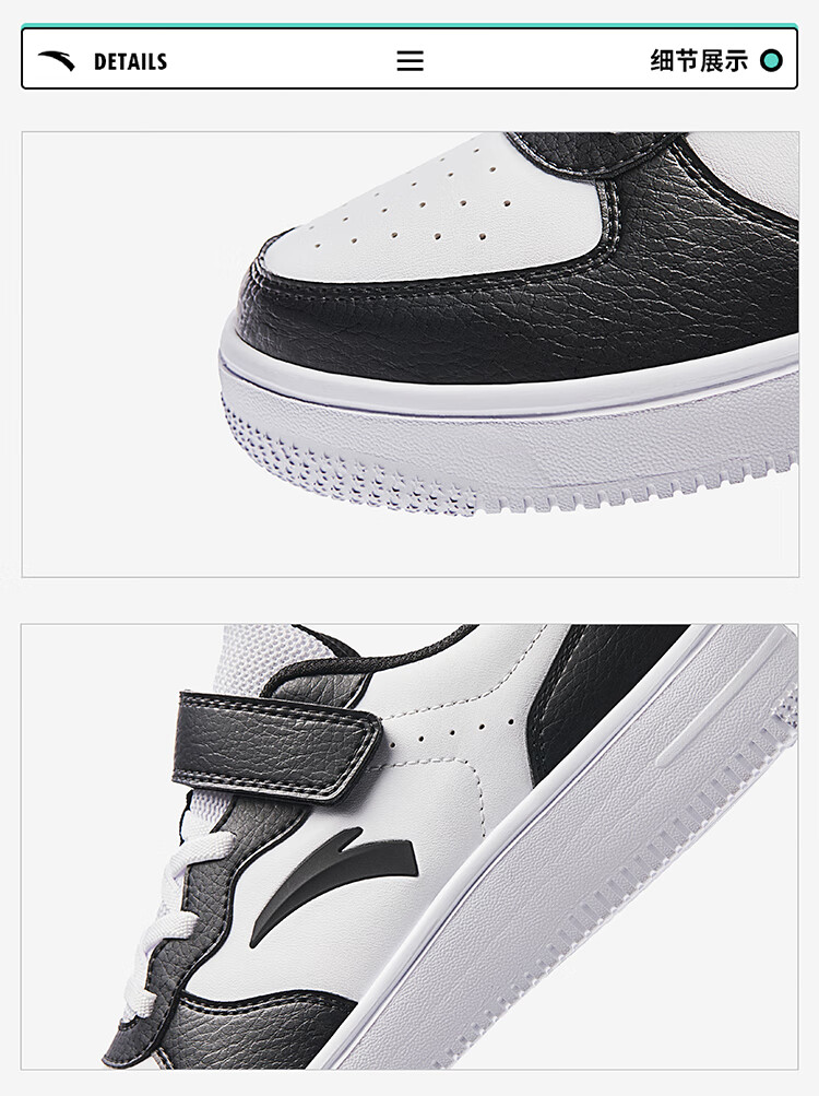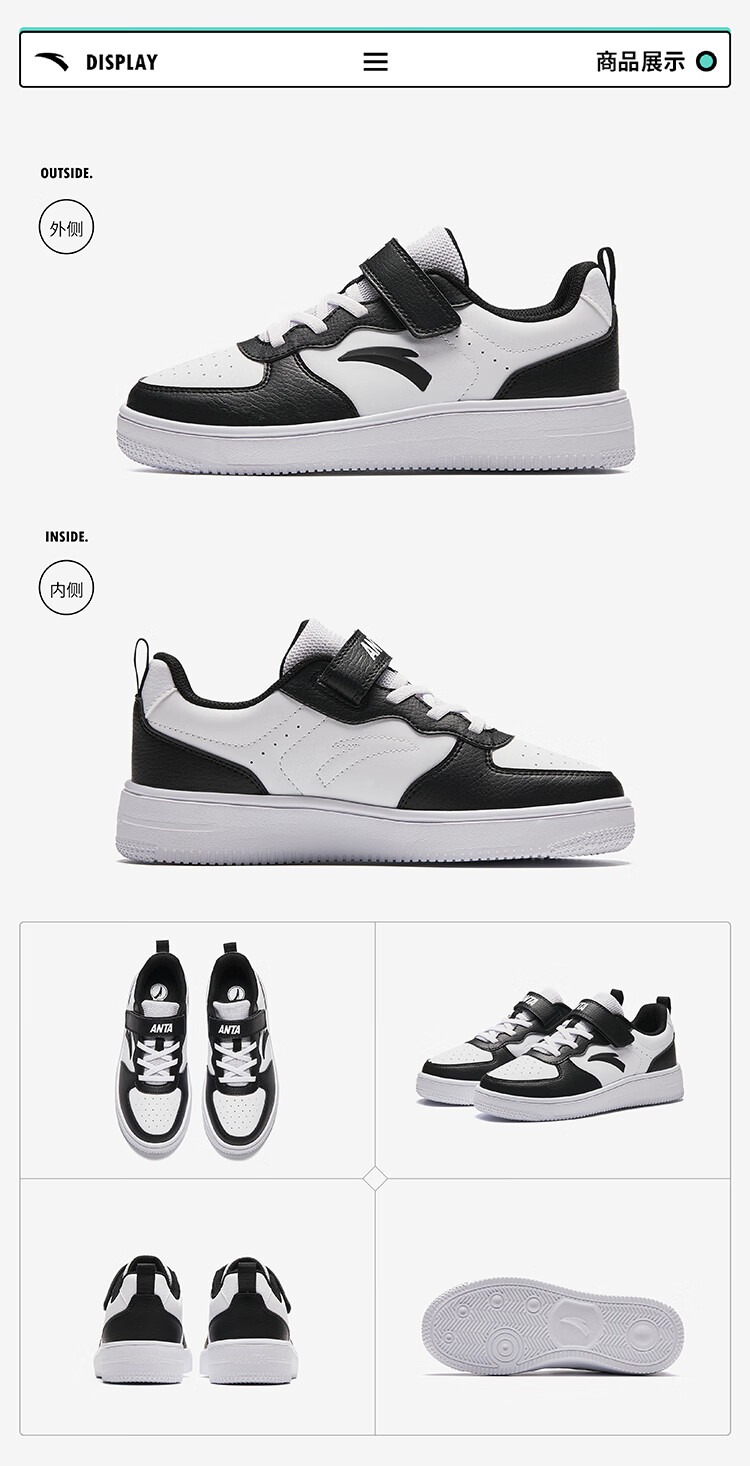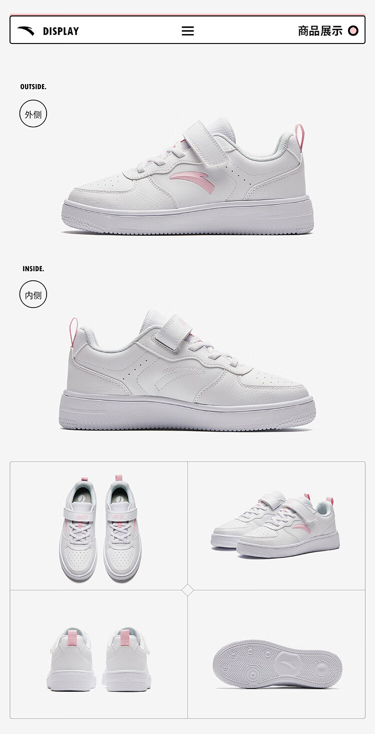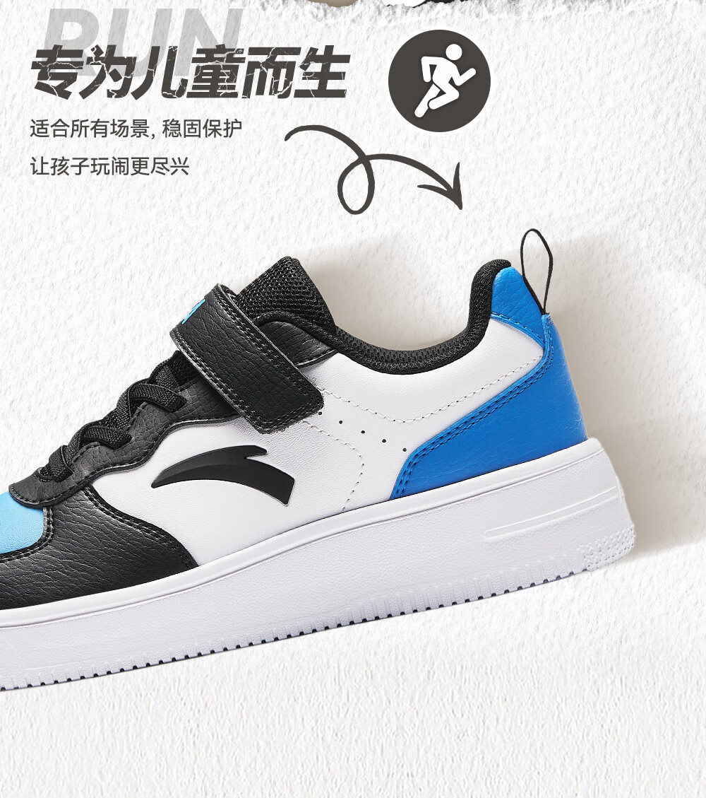 安踏儿童运动鞋男大童魔术贴校园小白鞋低帮板鞋A332418004H