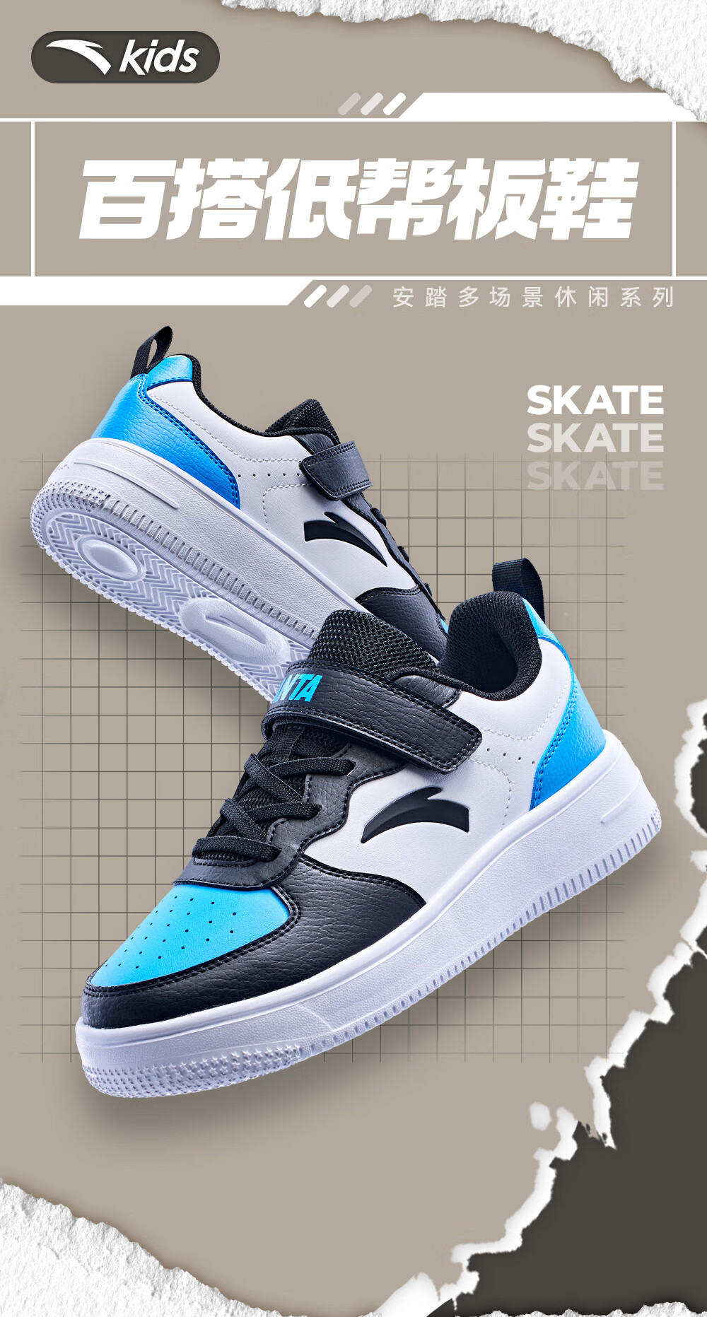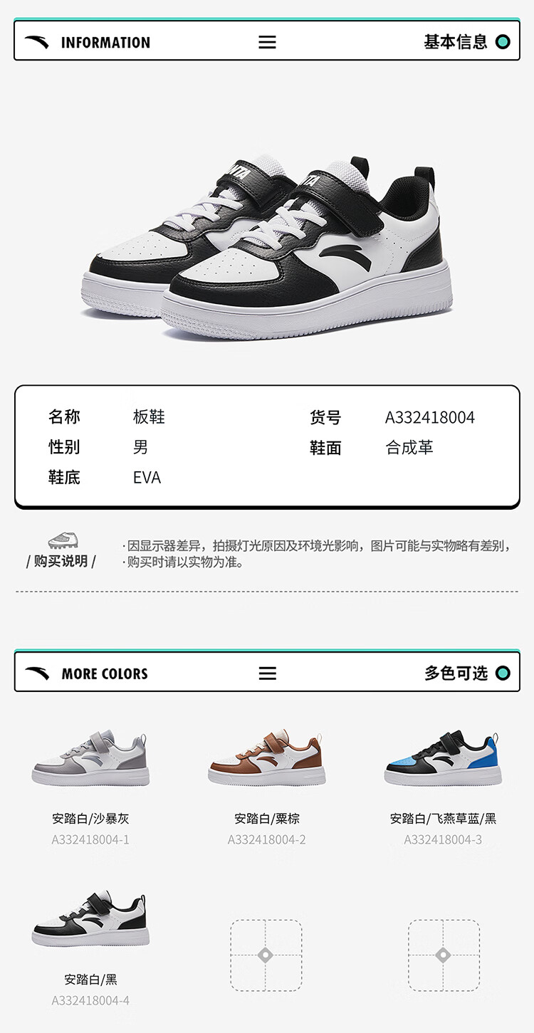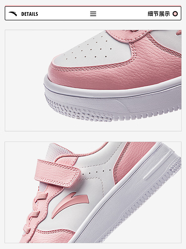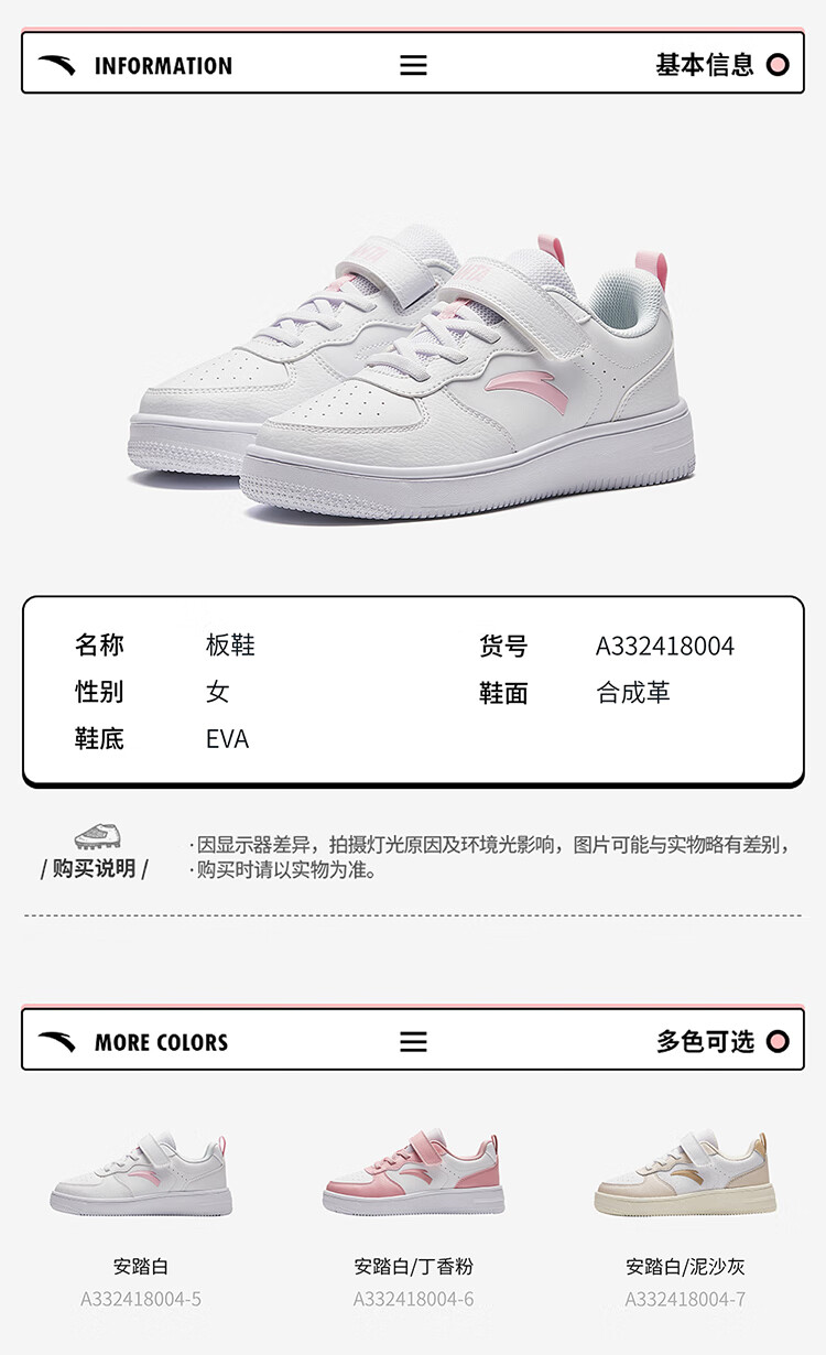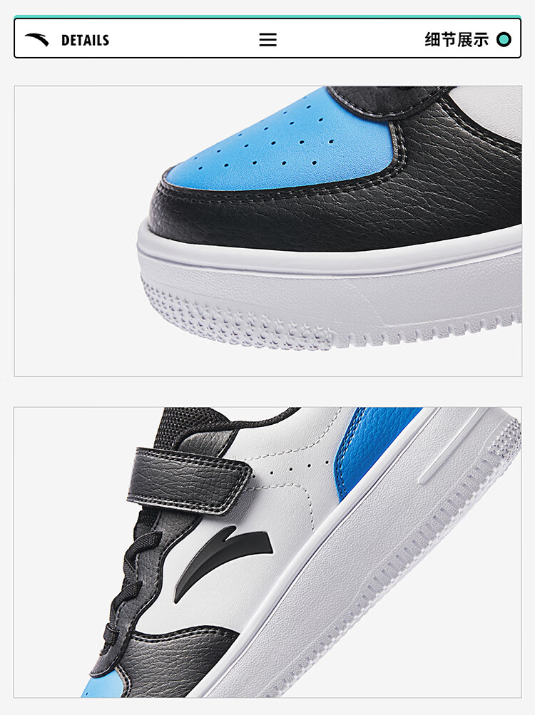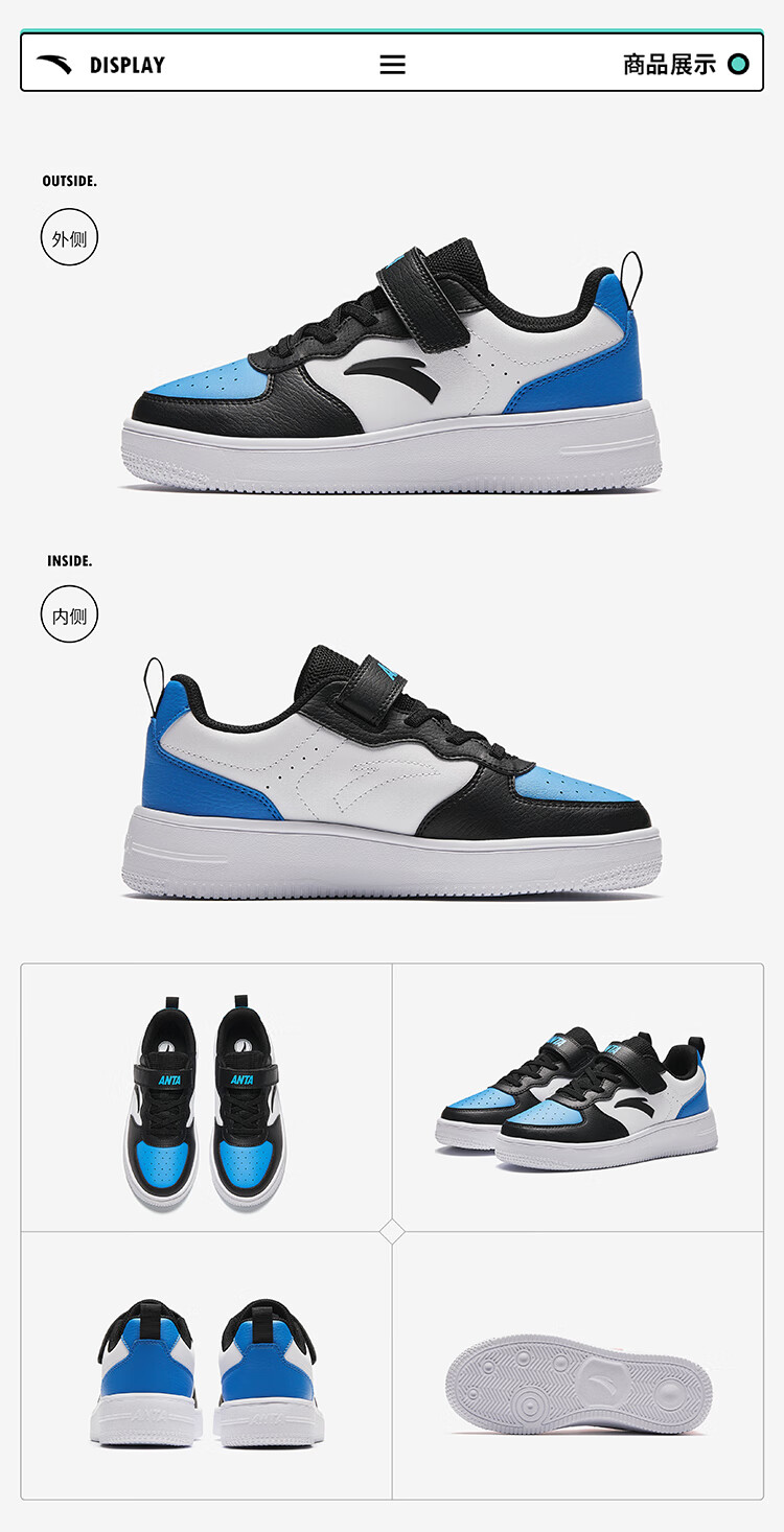 安踏儿童运动鞋男大童魔术贴校园小白鞋低帮板鞋A332418004H