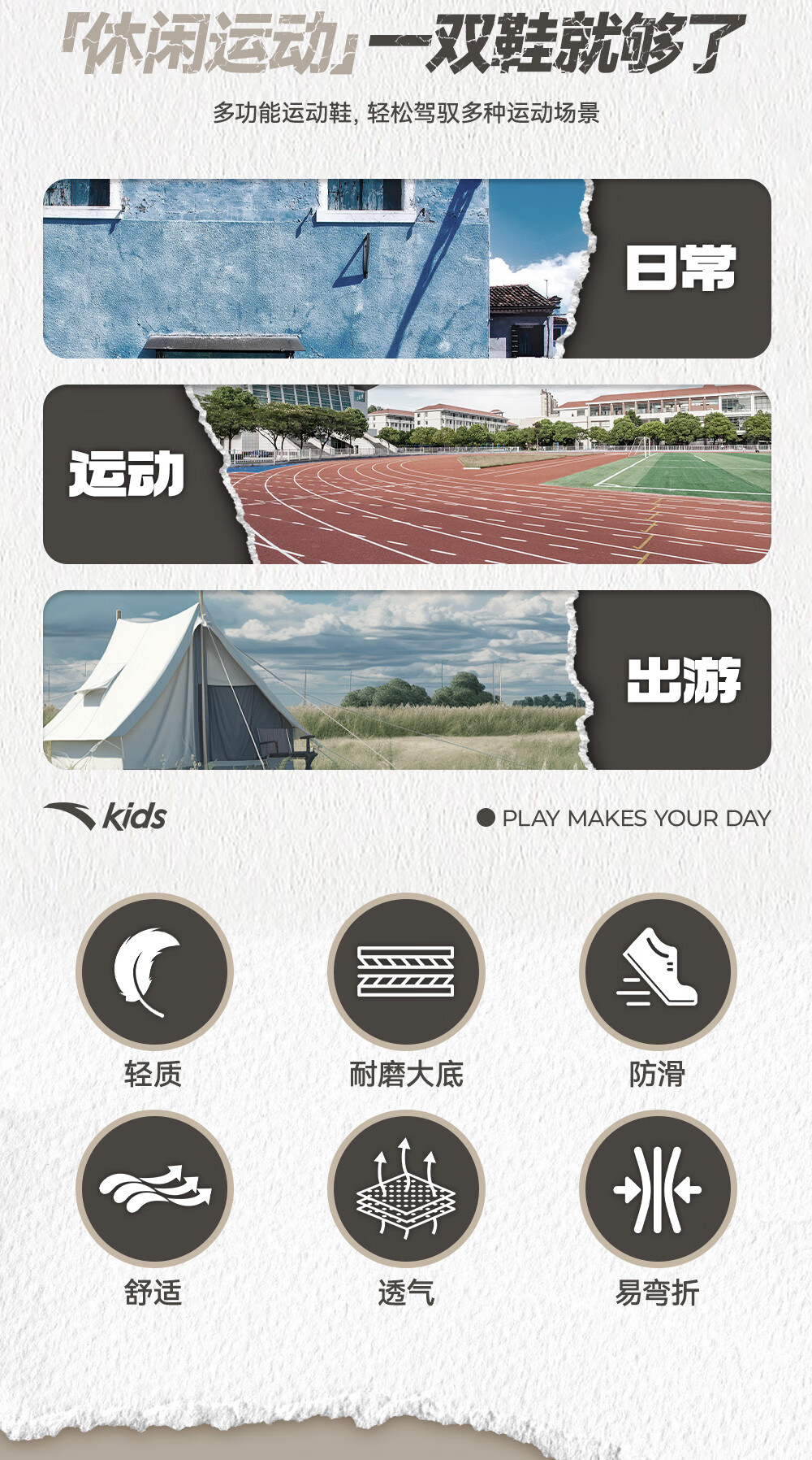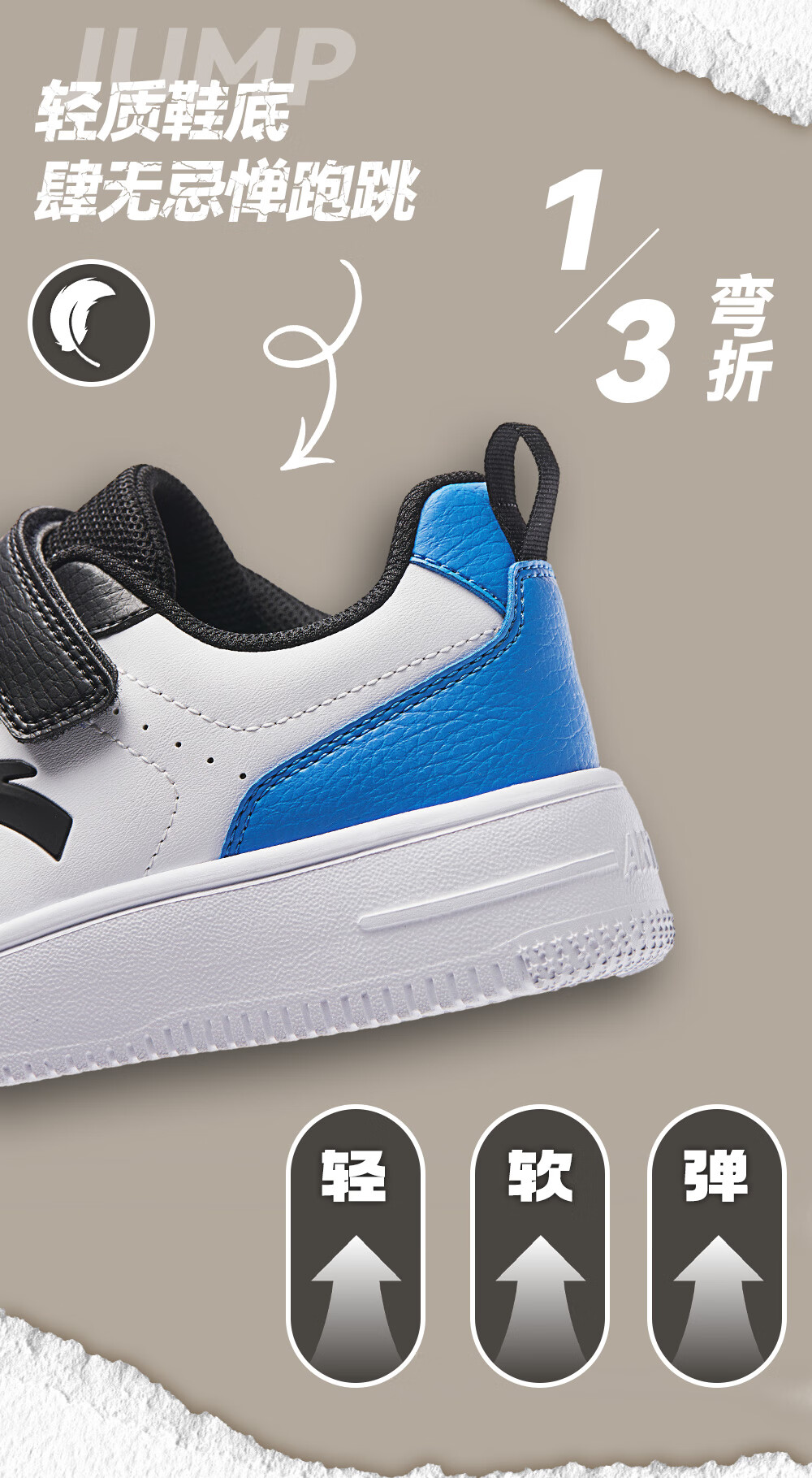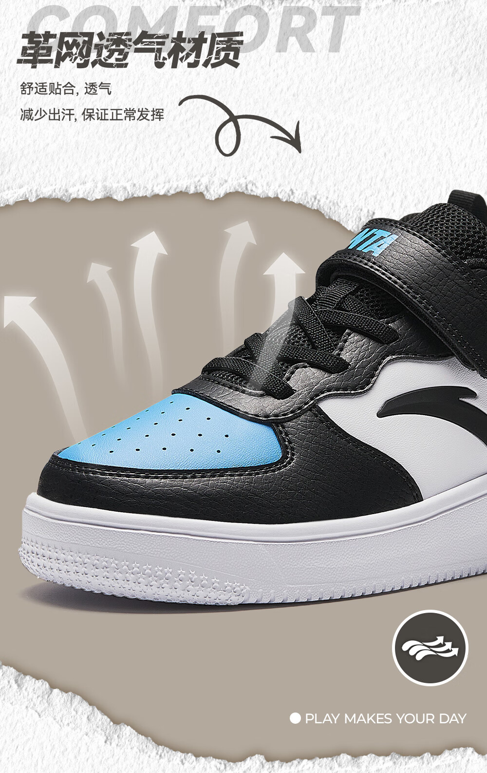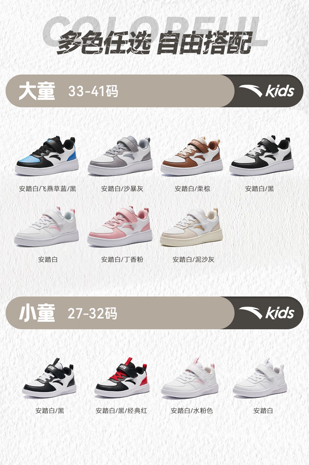安踏儿童运动鞋男大童魔术贴校园小白鞋低帮板鞋A332418004H
